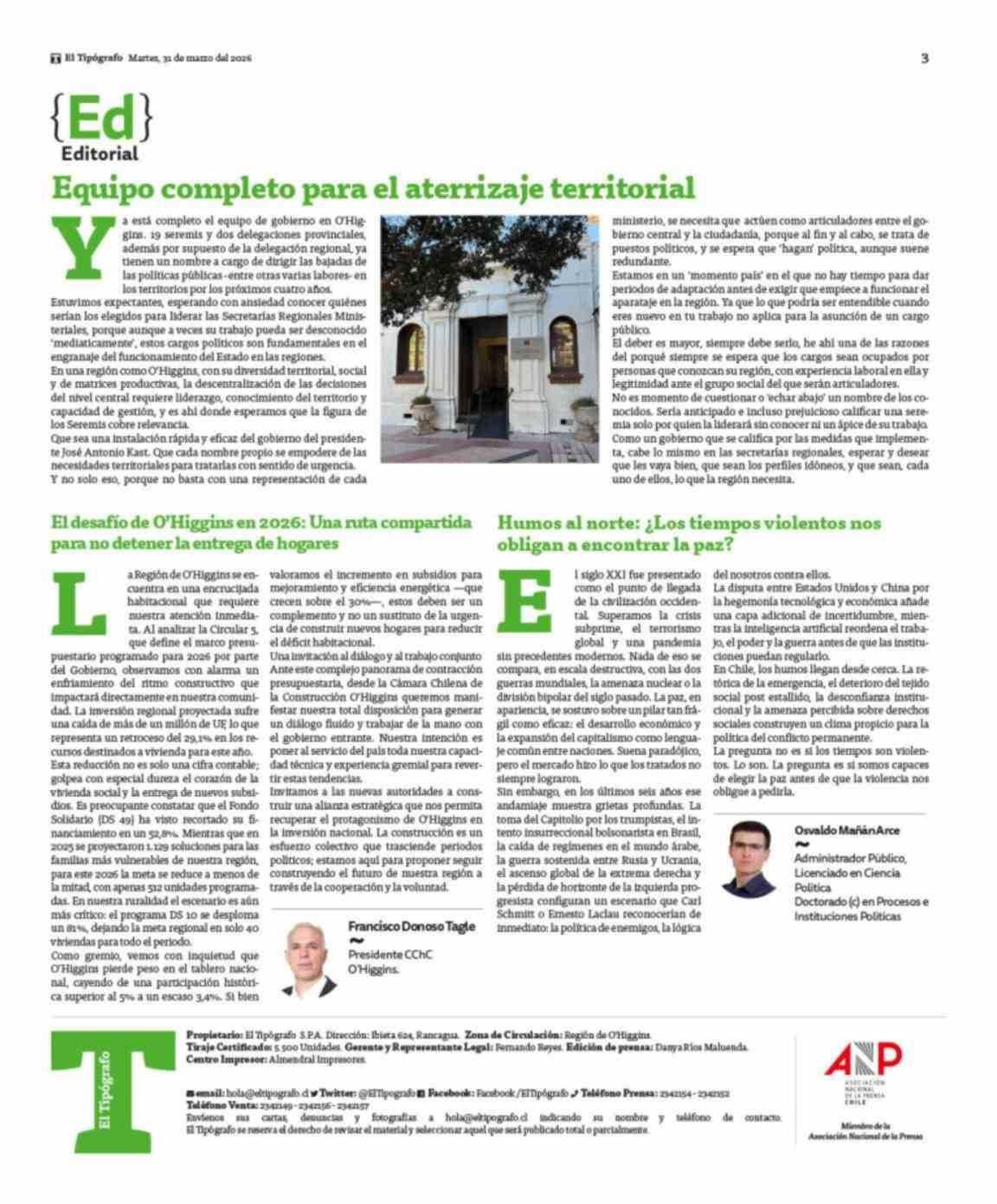 Fecha: 31-03-2026 Sector: Columnas de Opinión Región: Región del Libertador General Bernardo O'Higgins