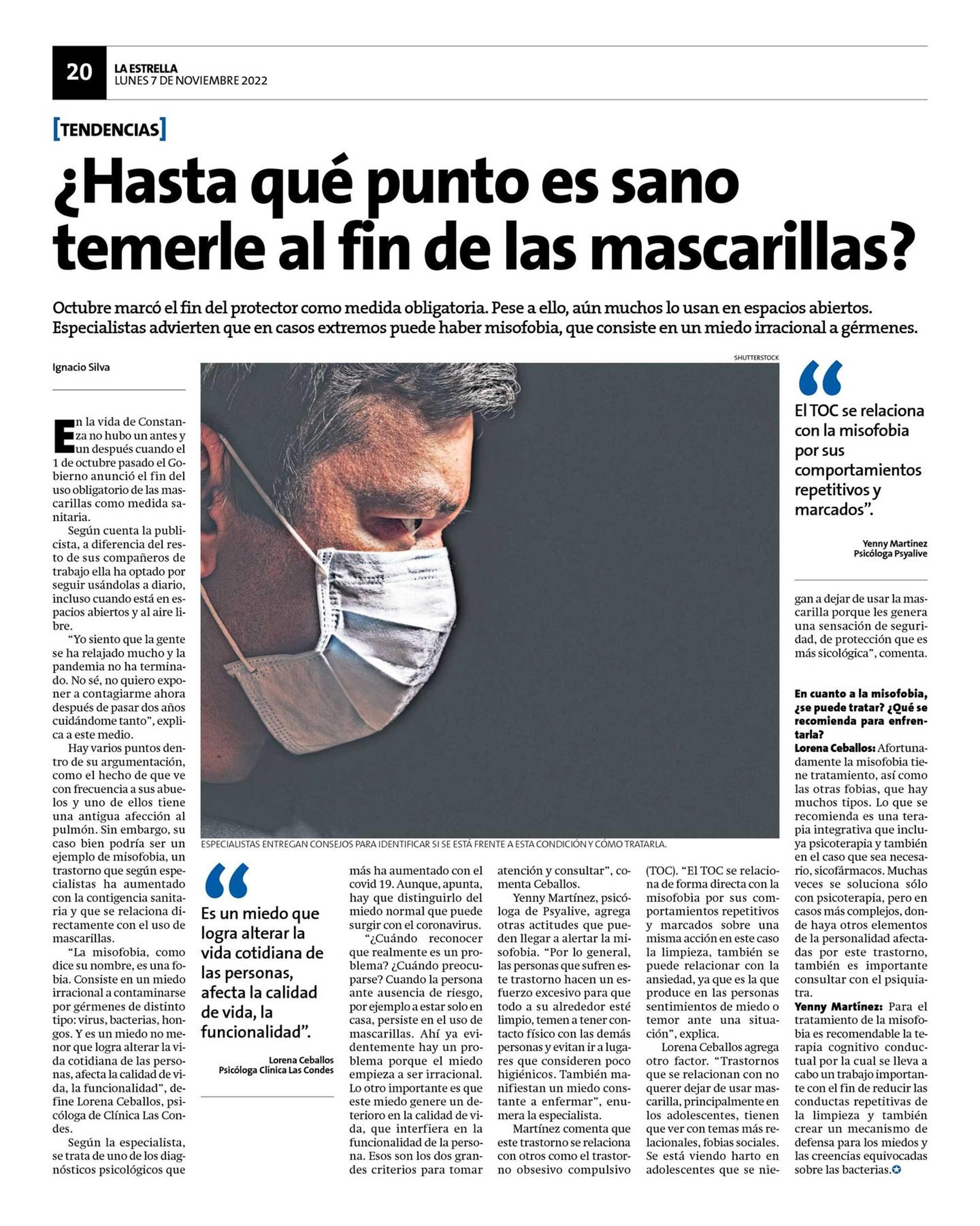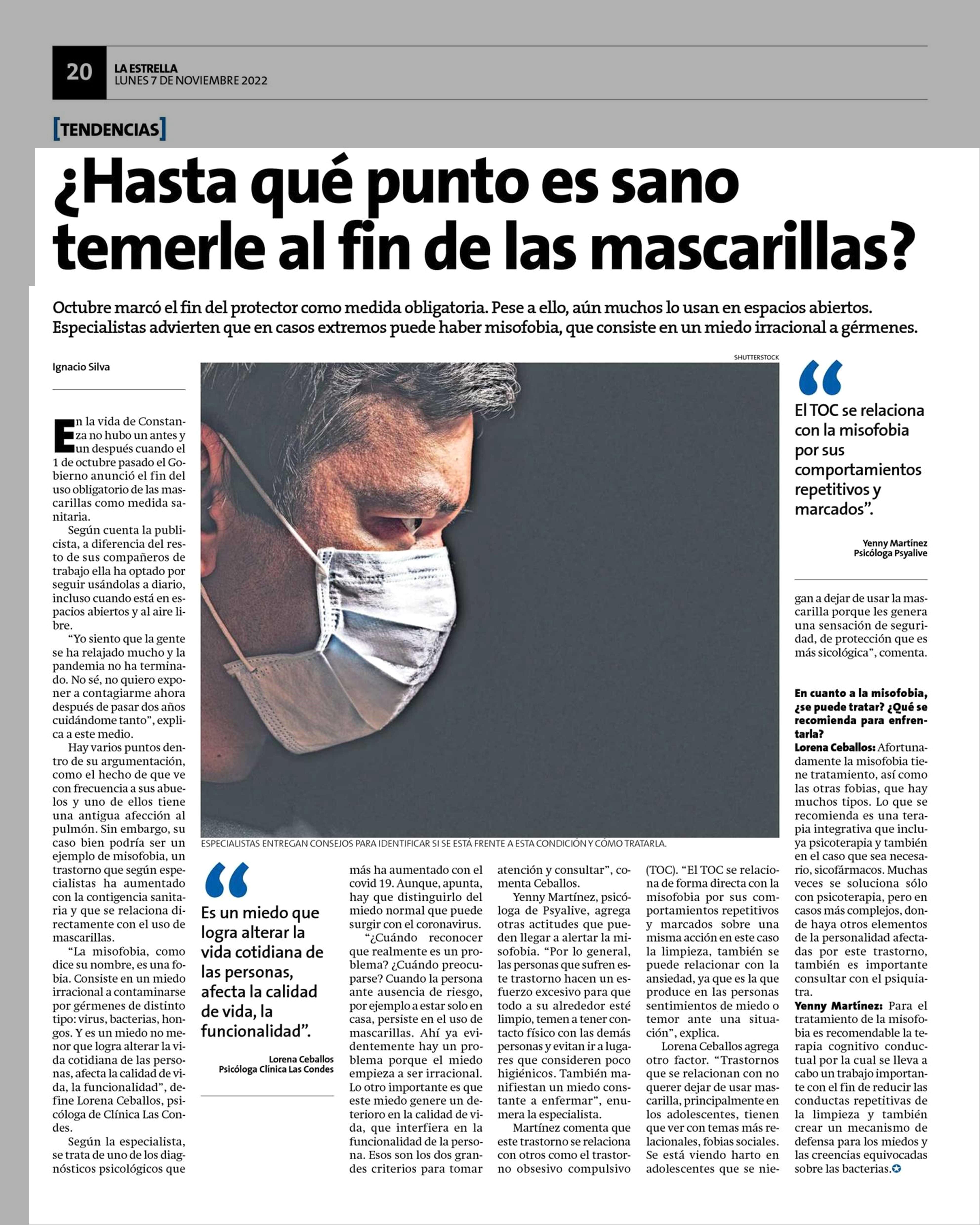 ¿ Hasta qué punto es sano temerle al fin de las mascarillas? 07-11-2022 La Estrella de Antofagasta |
