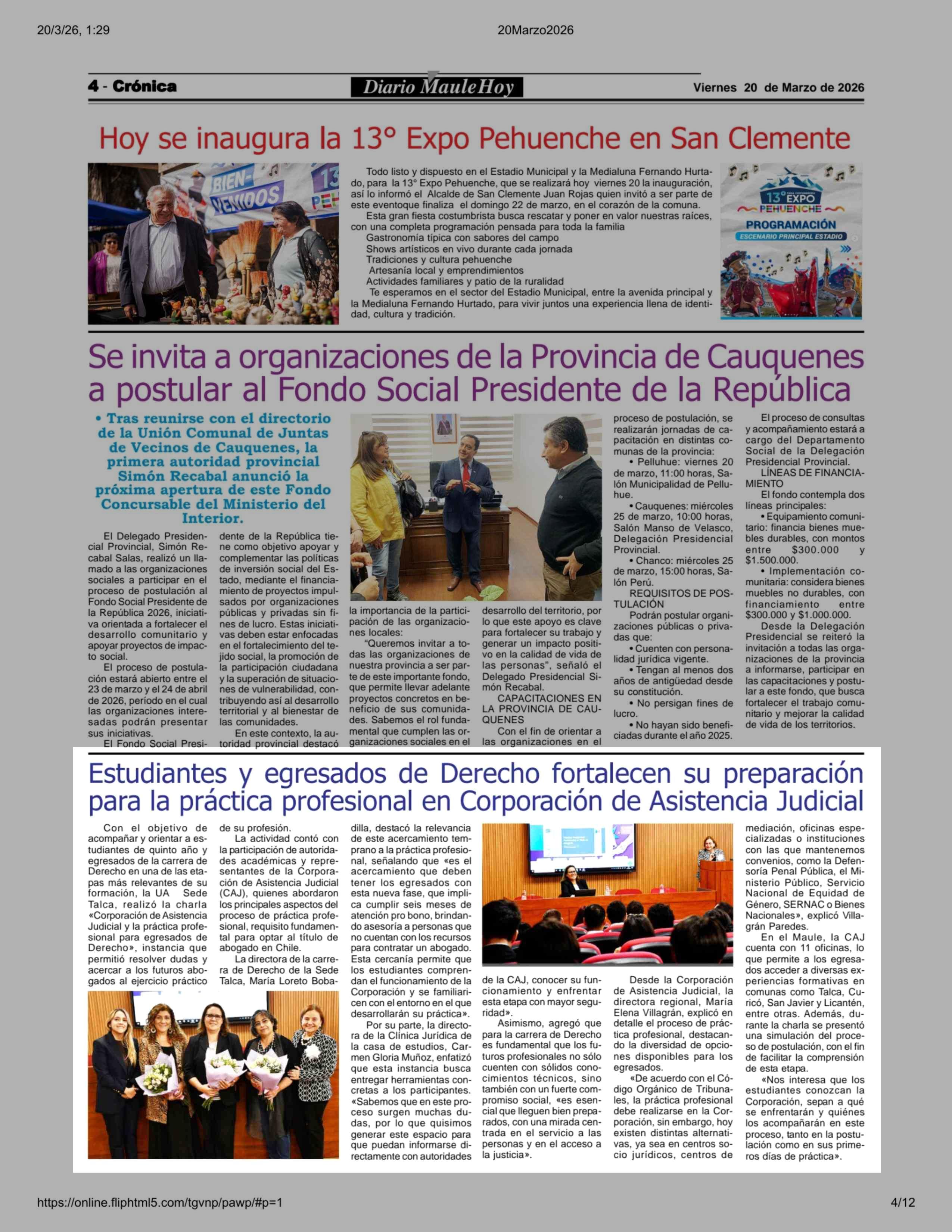 Estudiantes y egresados de Derecho fortalecen su preparación para la práctica profesional en Corporación de Asistencia Judicial 20-03-2026 Maule Hoy |