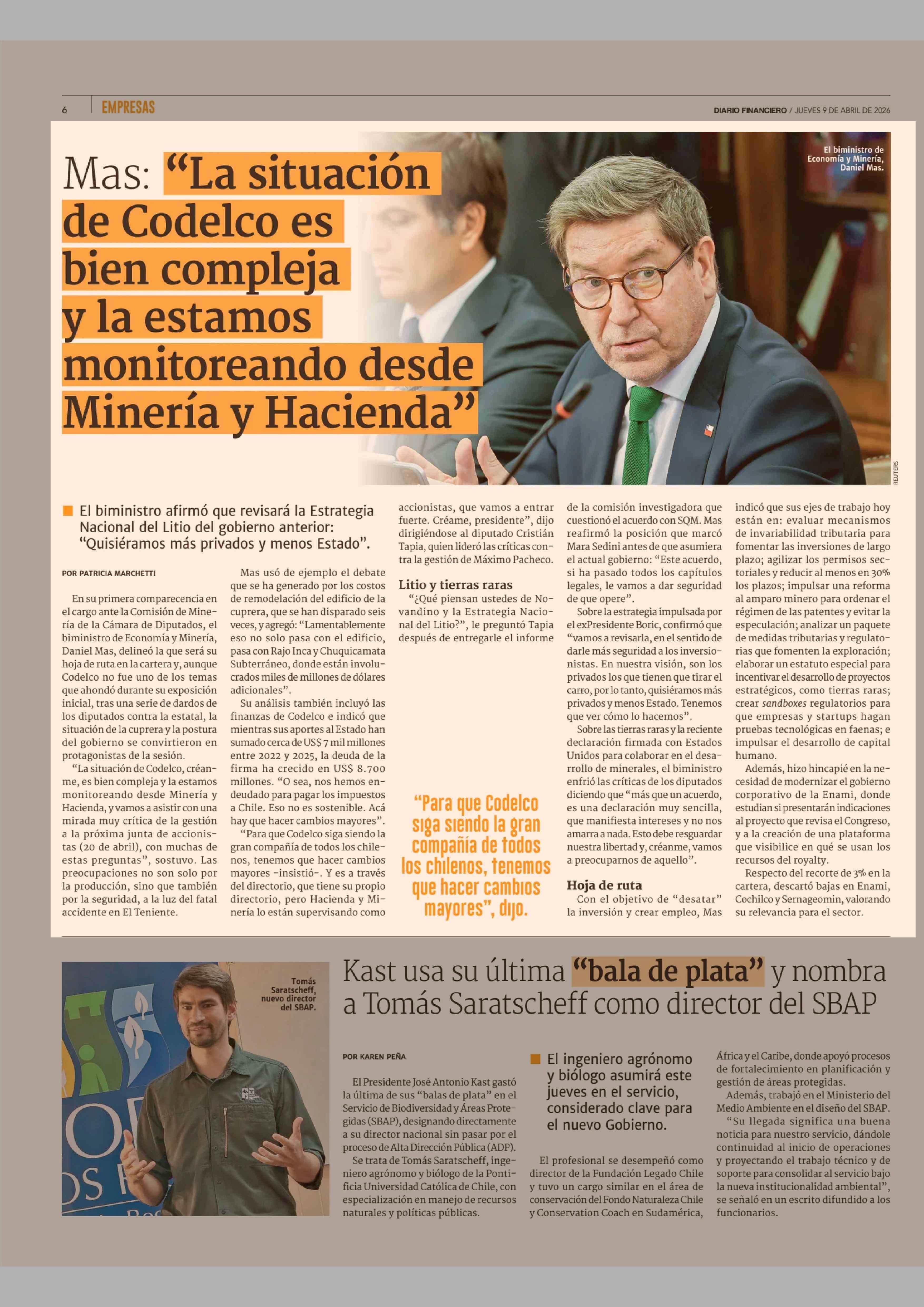 Título: Mas: "La situación de Codelco es bien compleja y la estamos monitoreando desde Minería y Hacienda"
