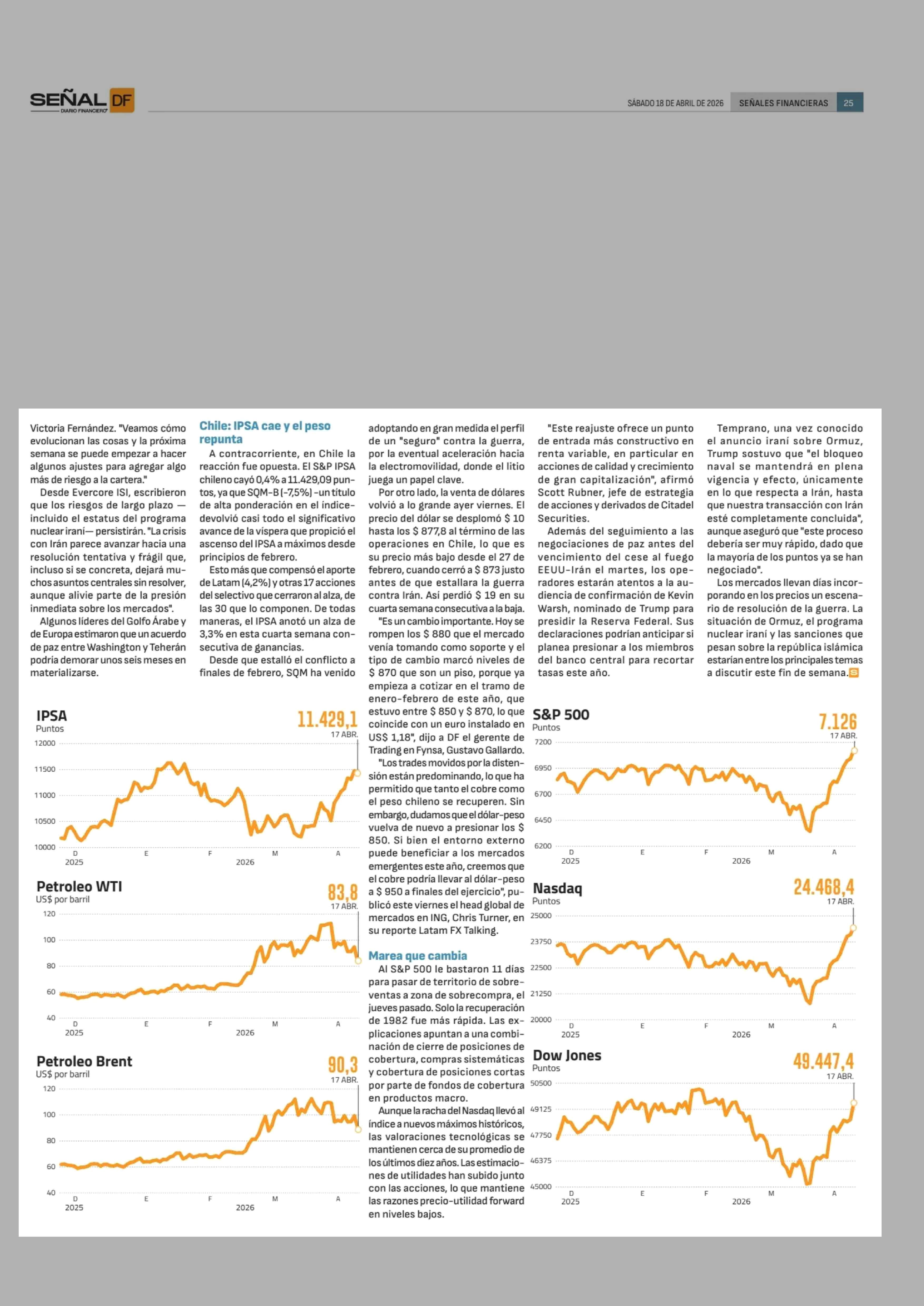 Wall Street lo da vuelta: mercado celebra la reapertura del estrecho de Ormuz 18-04-2026 Diario Financiero |