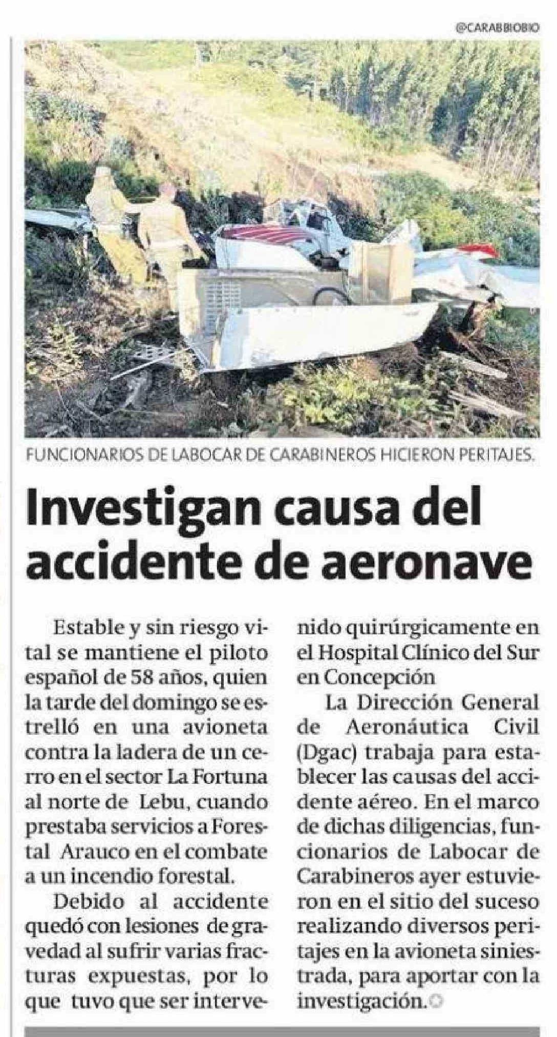 Investigan causa del accidente de aeronave 13-01-2026 La Estrella de Concepción |