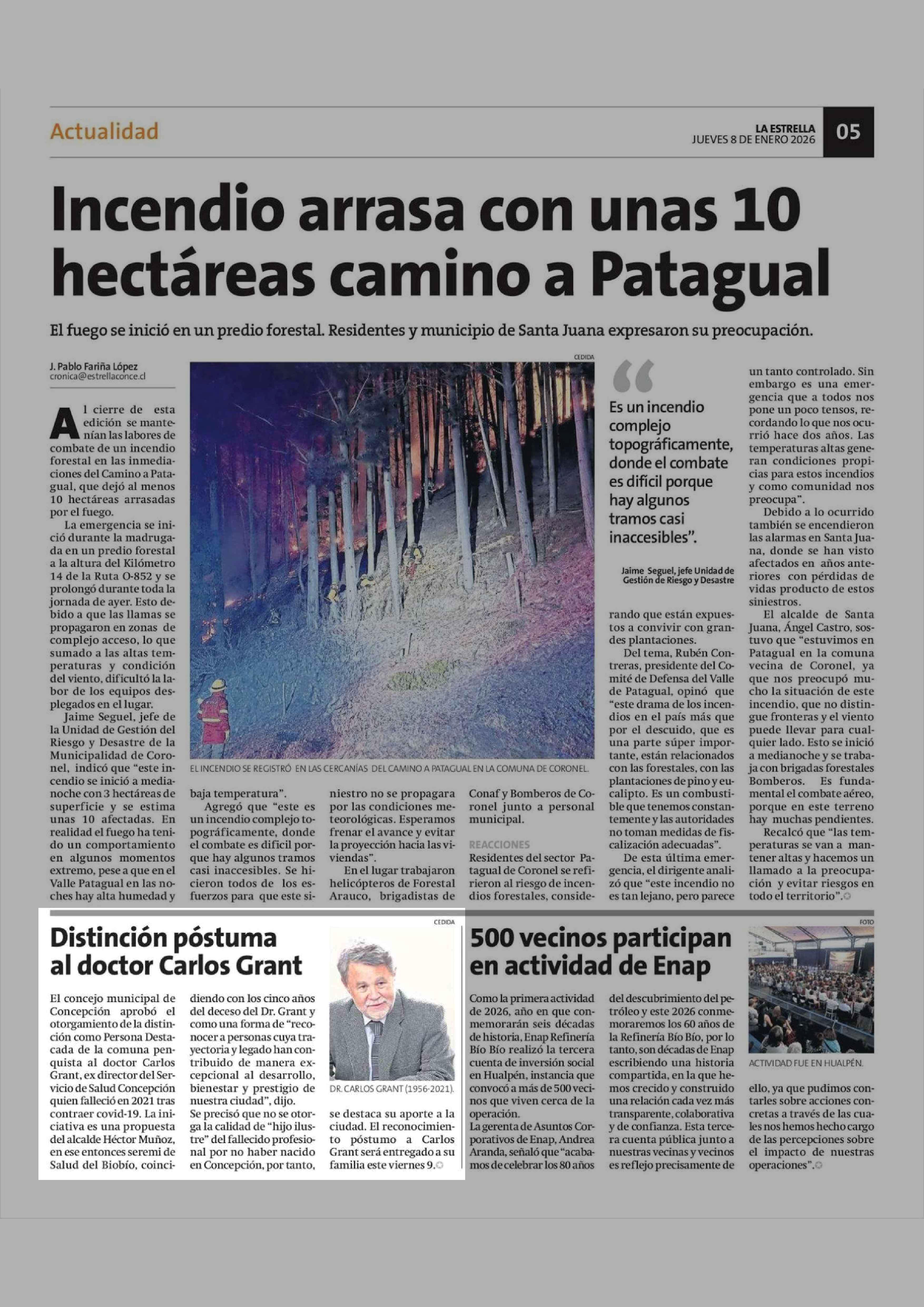 Distinción póstuma al doctor Carlos Grant 08-01-2026 La Estrella de Concepción |