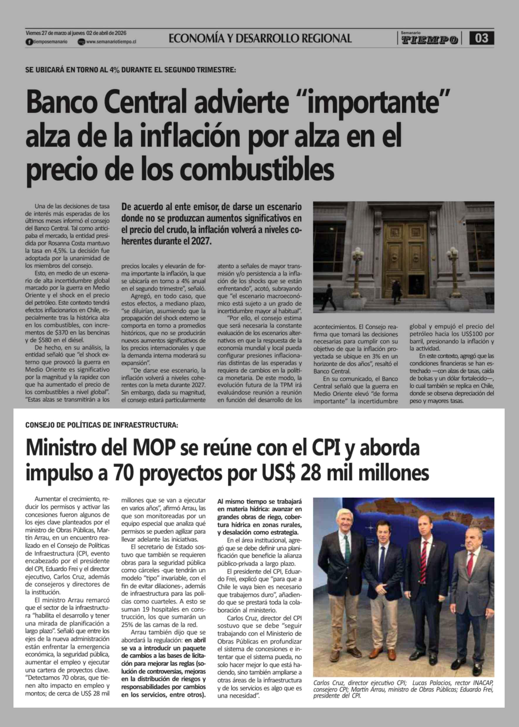 Título: Ministro del MOP se reúne con el CPI y aborda impulso a 70 proyectos por US$ 28 mil millones