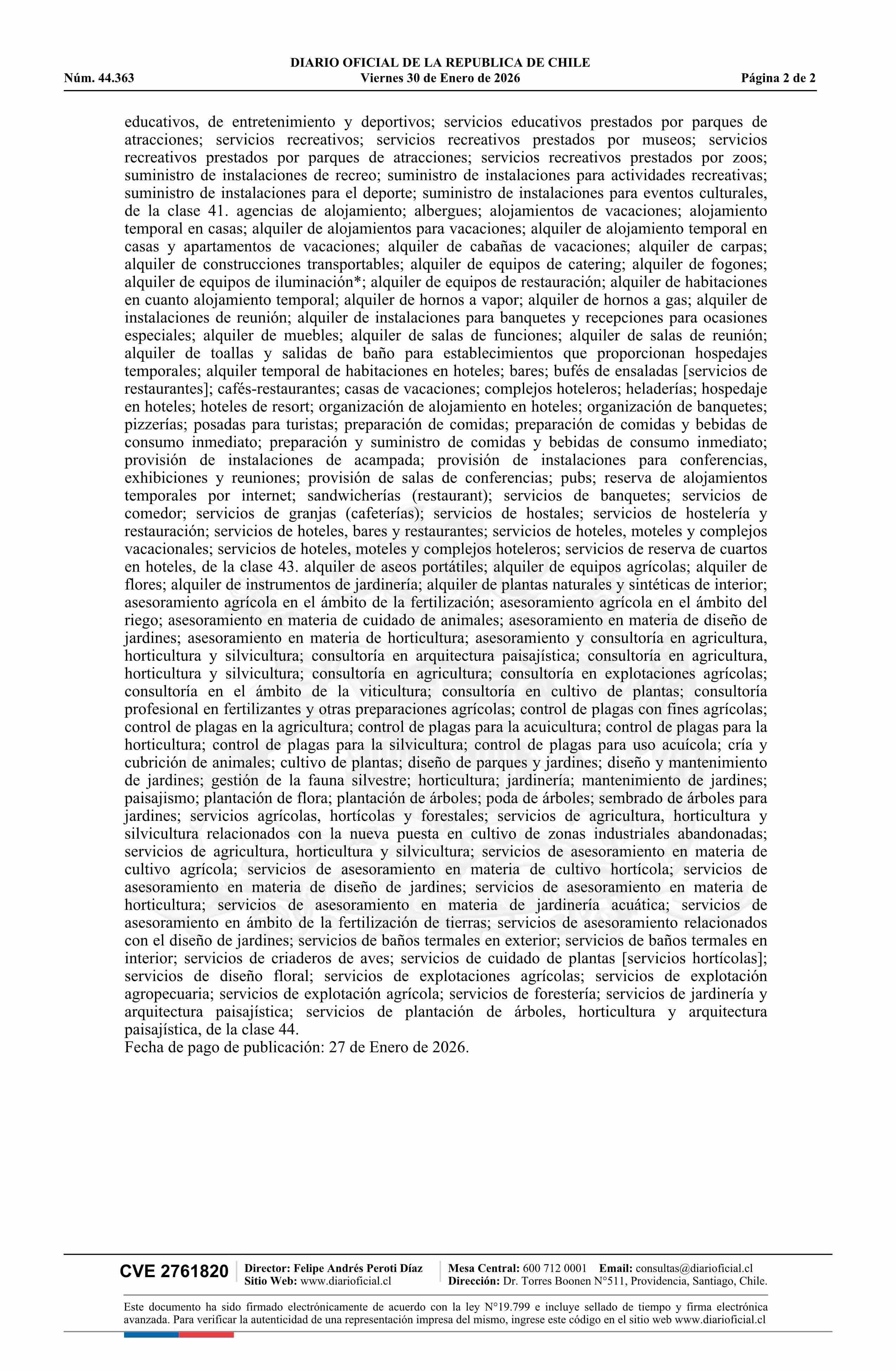 Fuente: Diario Oficial Edición Electrónica (Diario Oficial de Chile - 6 Marcas Y Patentes) Página(s): 262-263