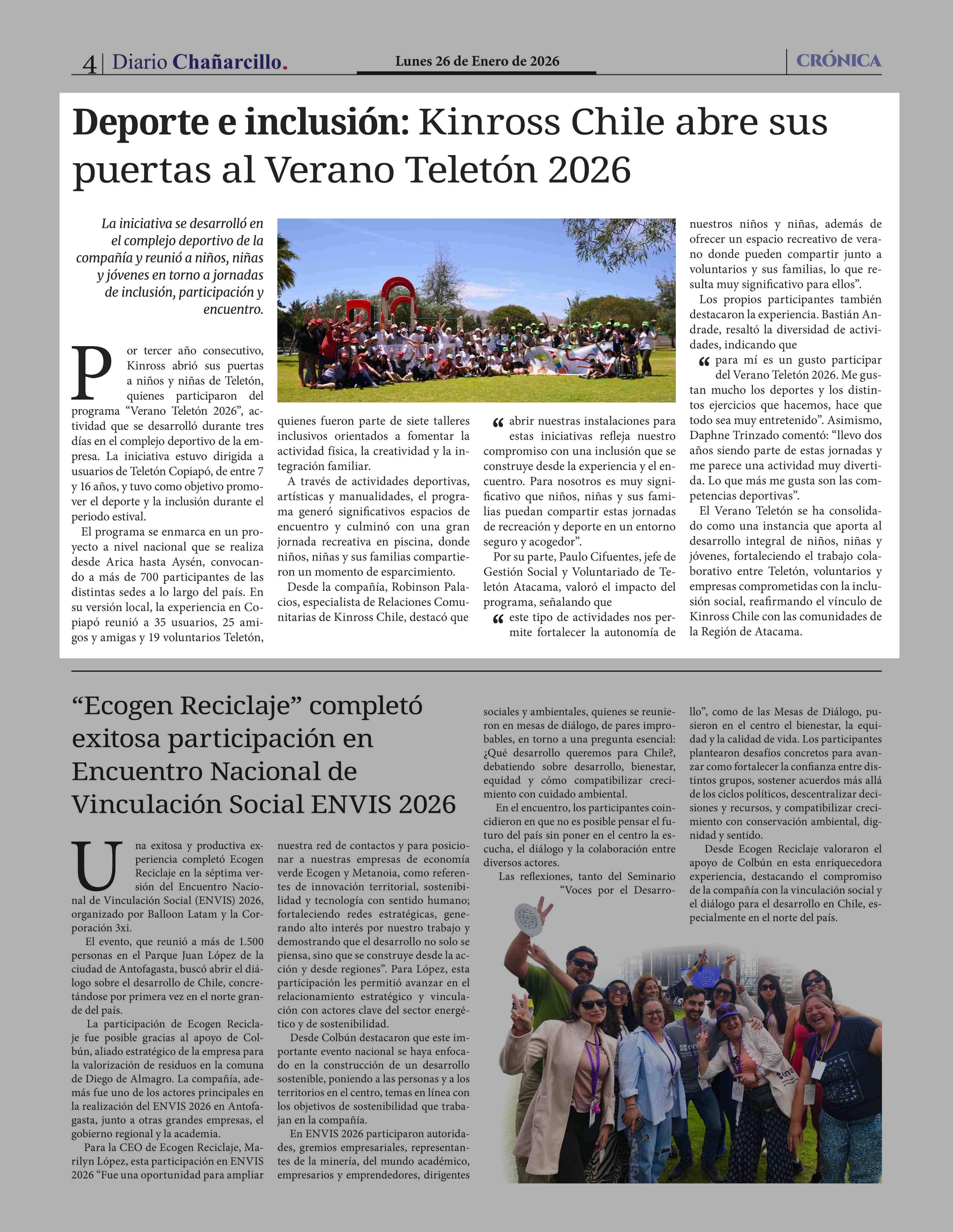 | Título: | Deporte e inclusión: Kinross Chile abre sus puertas al Verano Teletón 2026 |