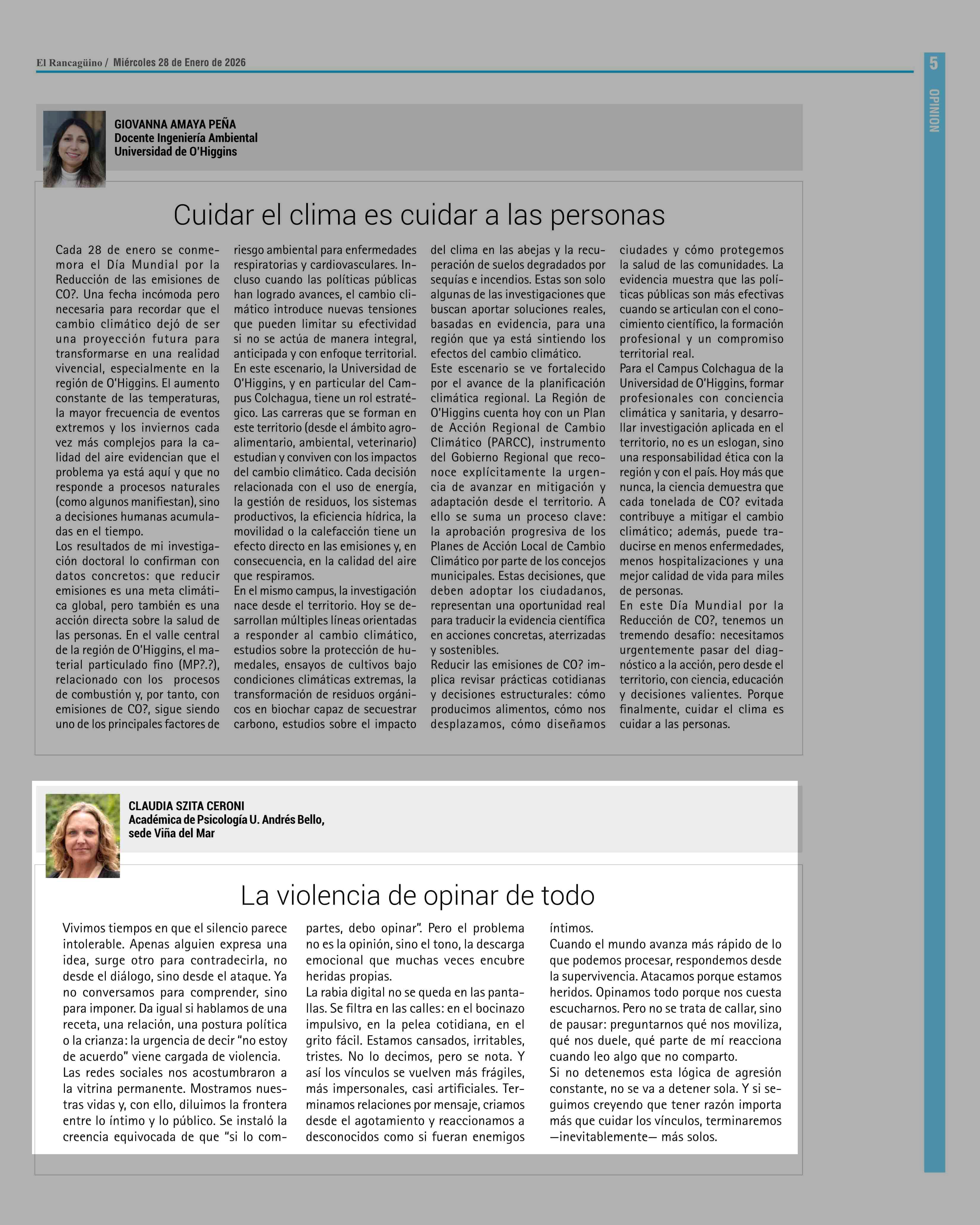 | Fecha: | 28-01-2026 | Sector: | Columnas de Opinión | Región: | Región del Libertador General Bernardo O'Higgins |