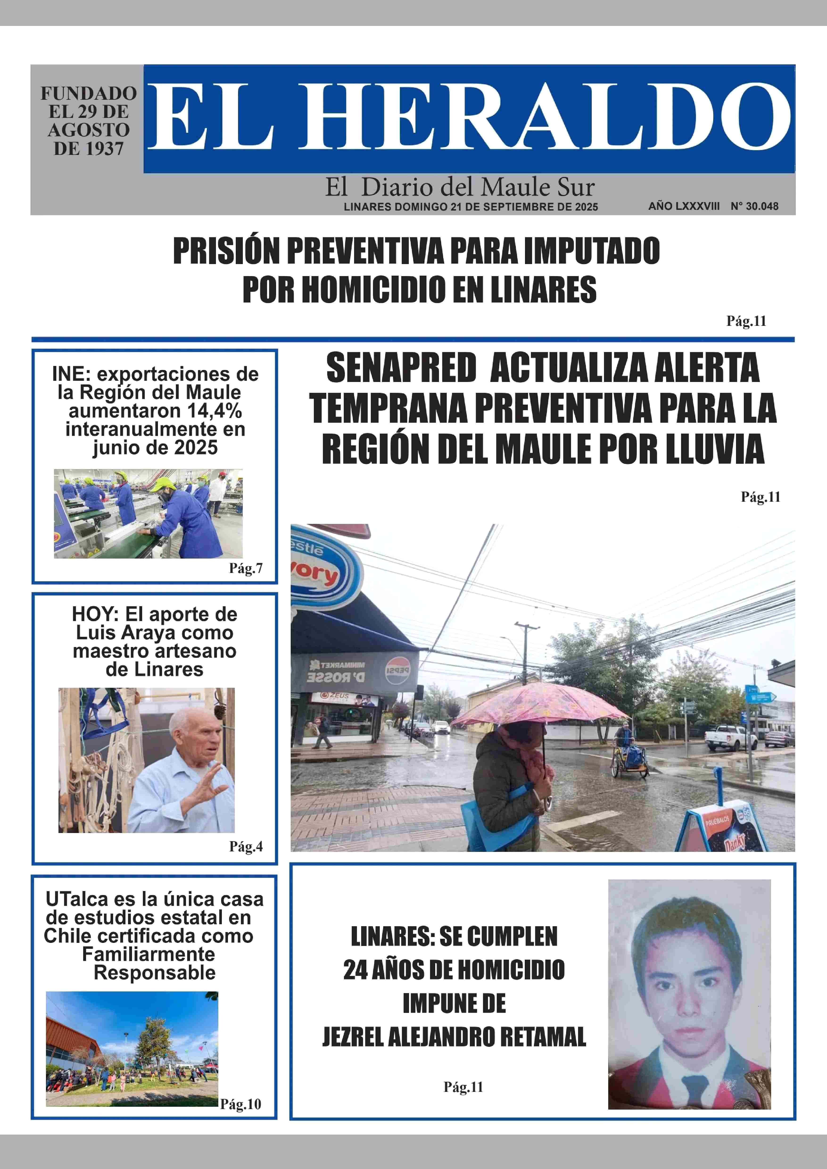 PORTADA EL HERALDO DE LINARES - CHILE 21-09-2025 El Heraldo |