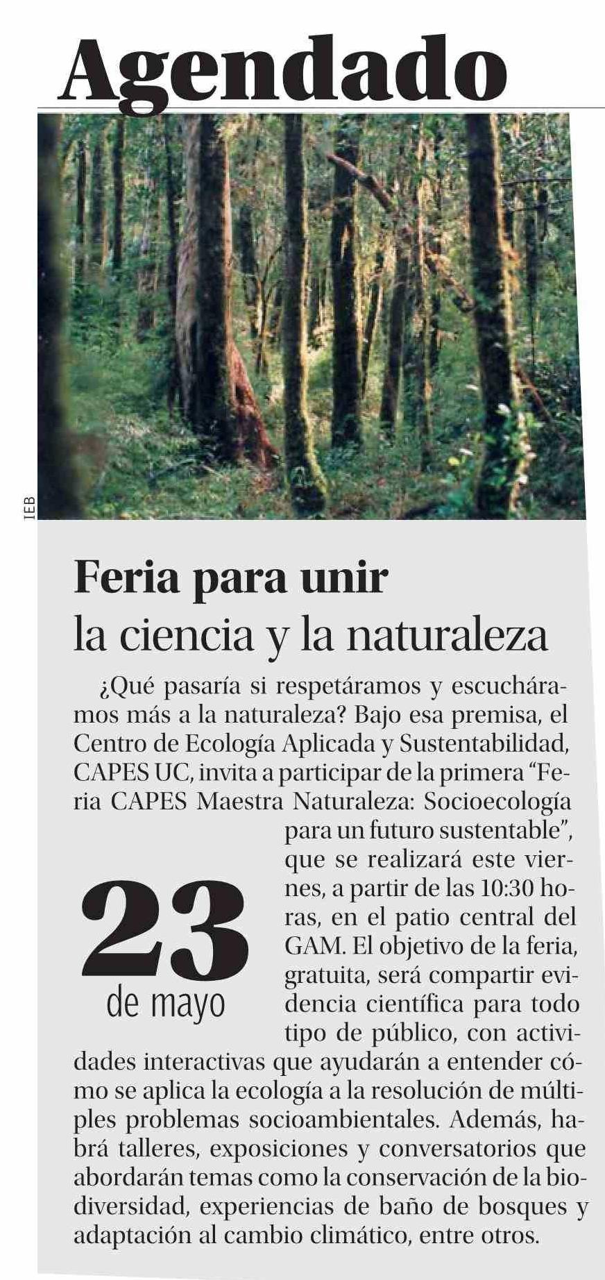 Feria para unir la ciencia y la naturaleza 21-05-2025 El Mercurio |