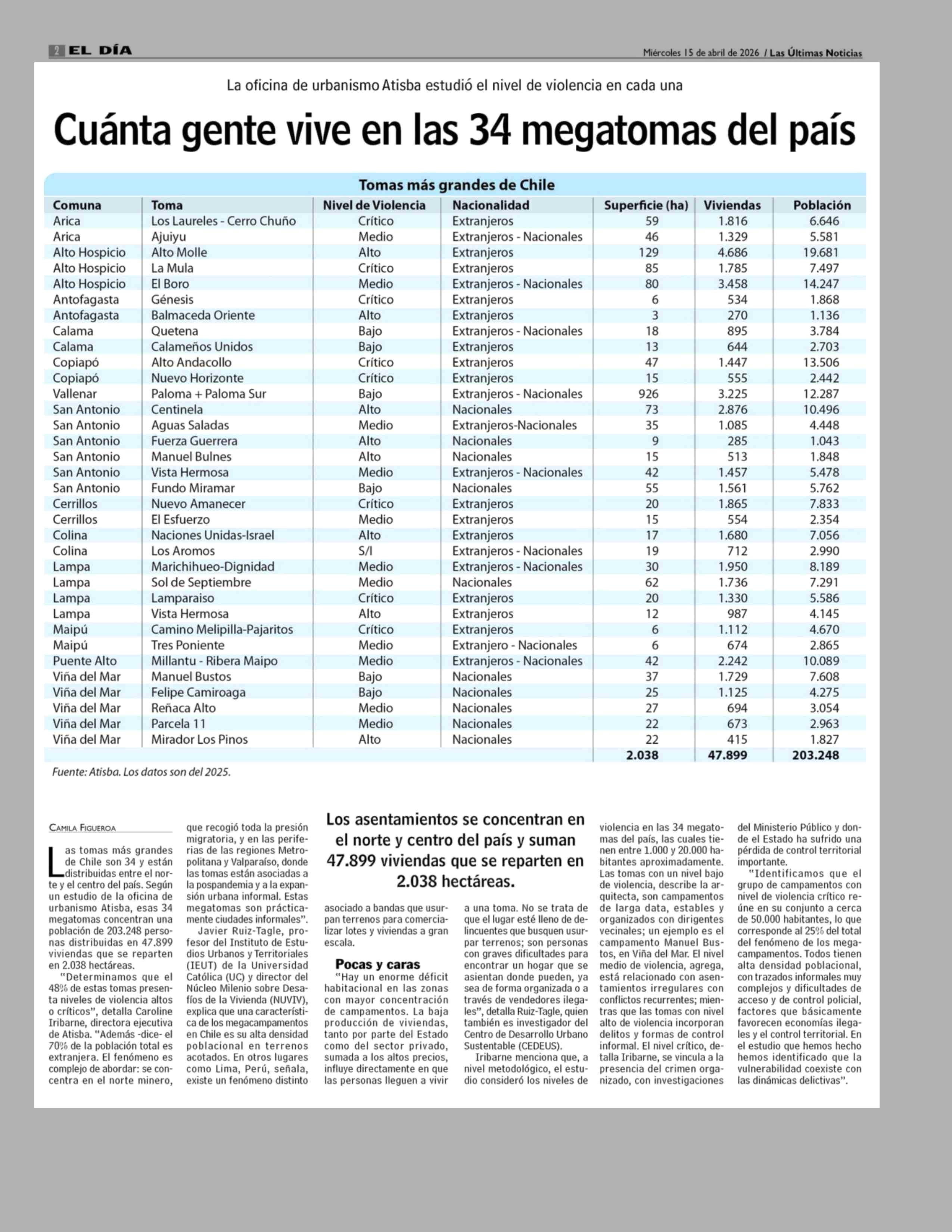 Título: Cuanta gente vive en las 34 megatomas del país