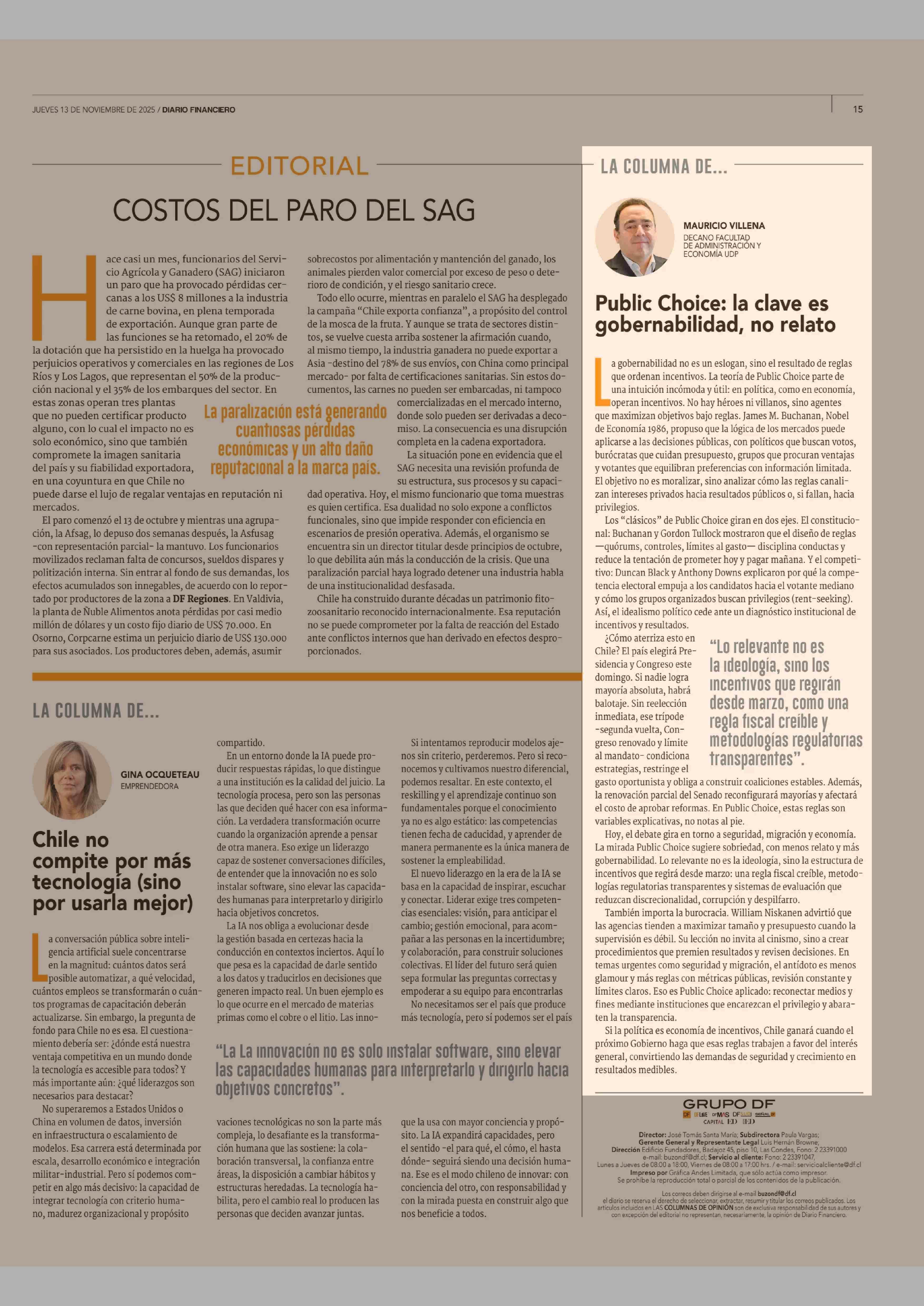 Columnas de Opinión: Public Choice: la clave es gobernabilidad, no relato 13-11-2025 Diario Financiero |