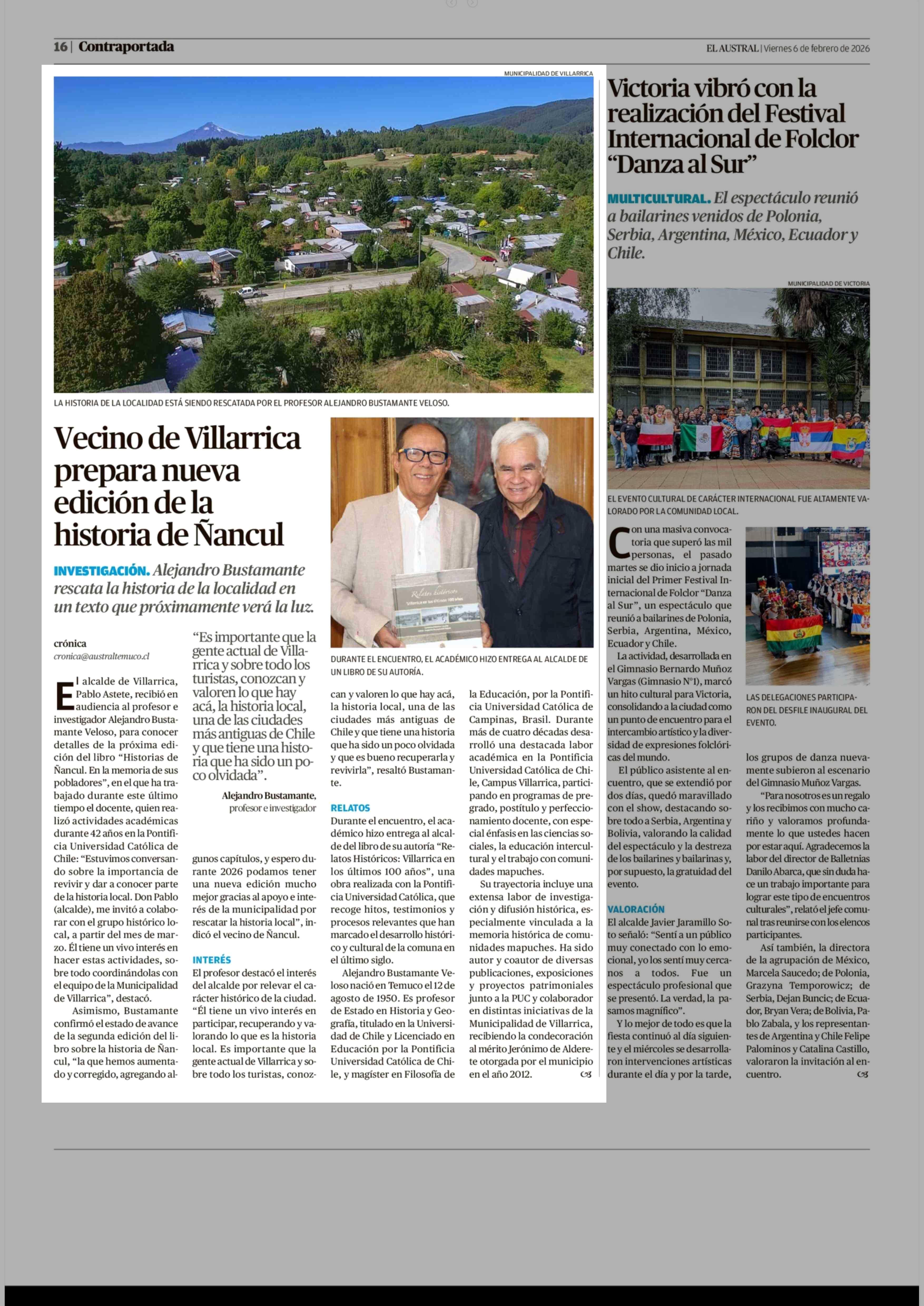 Vecino de Villarrica prepara nueva edición de la historia de Ñancul 06-02-2026 El Austral de la Araucanía |