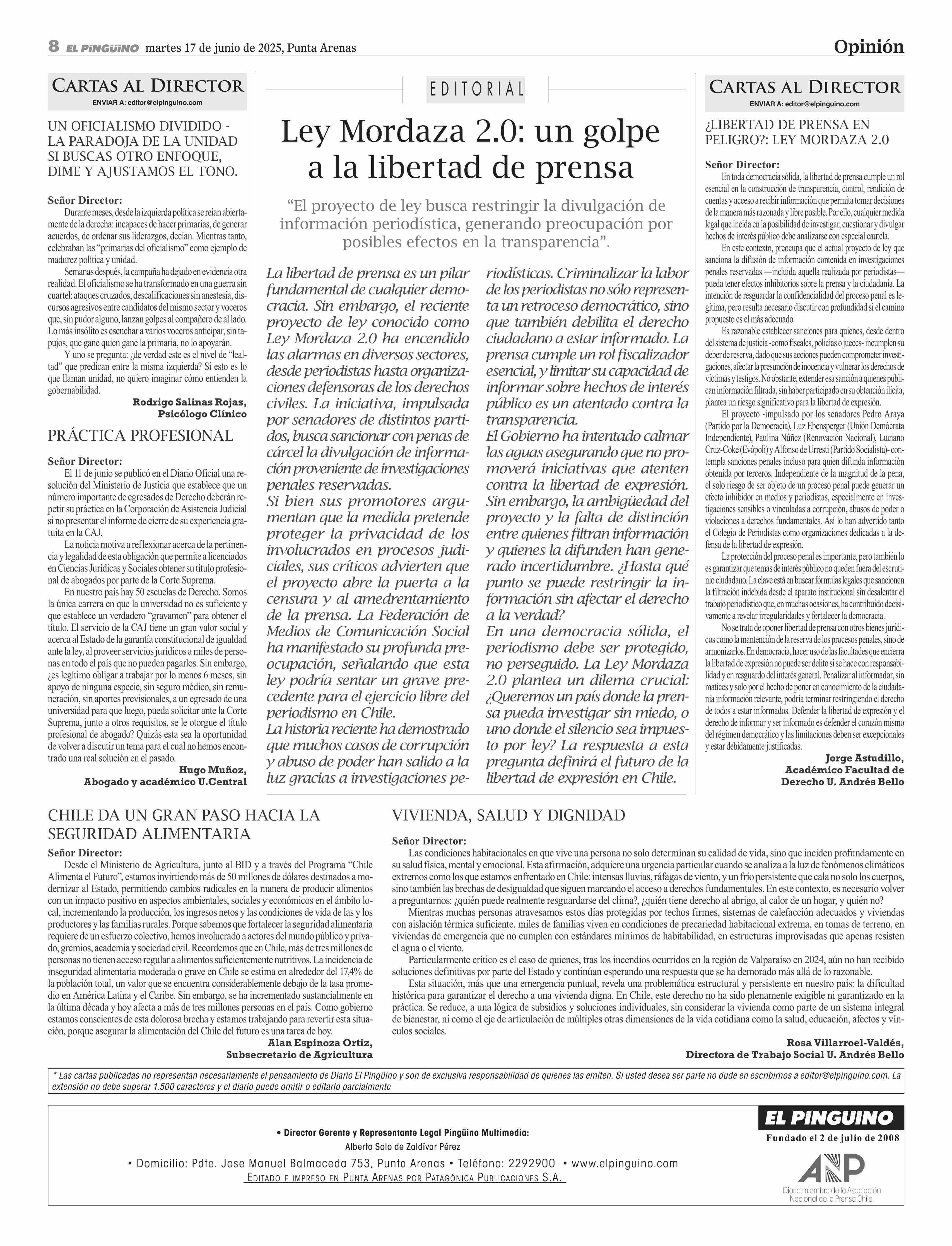 CARTAS: VIVIENDA, SALUD Y DIGNIDAD 17-06-2025 El Pingüino |