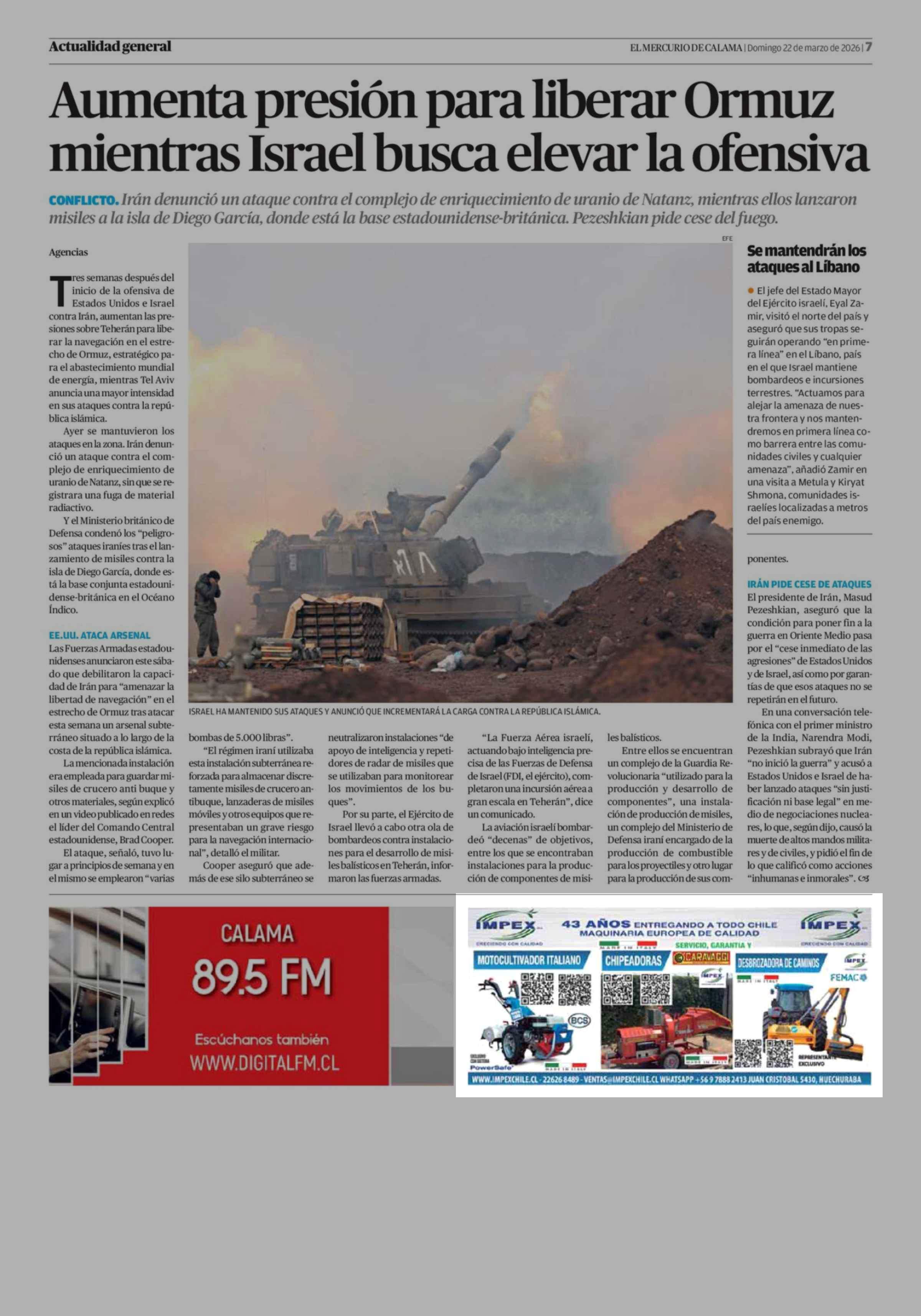 Aviso Publicitario: IMPEX 22-03-2026 El Mercurio de Calama |