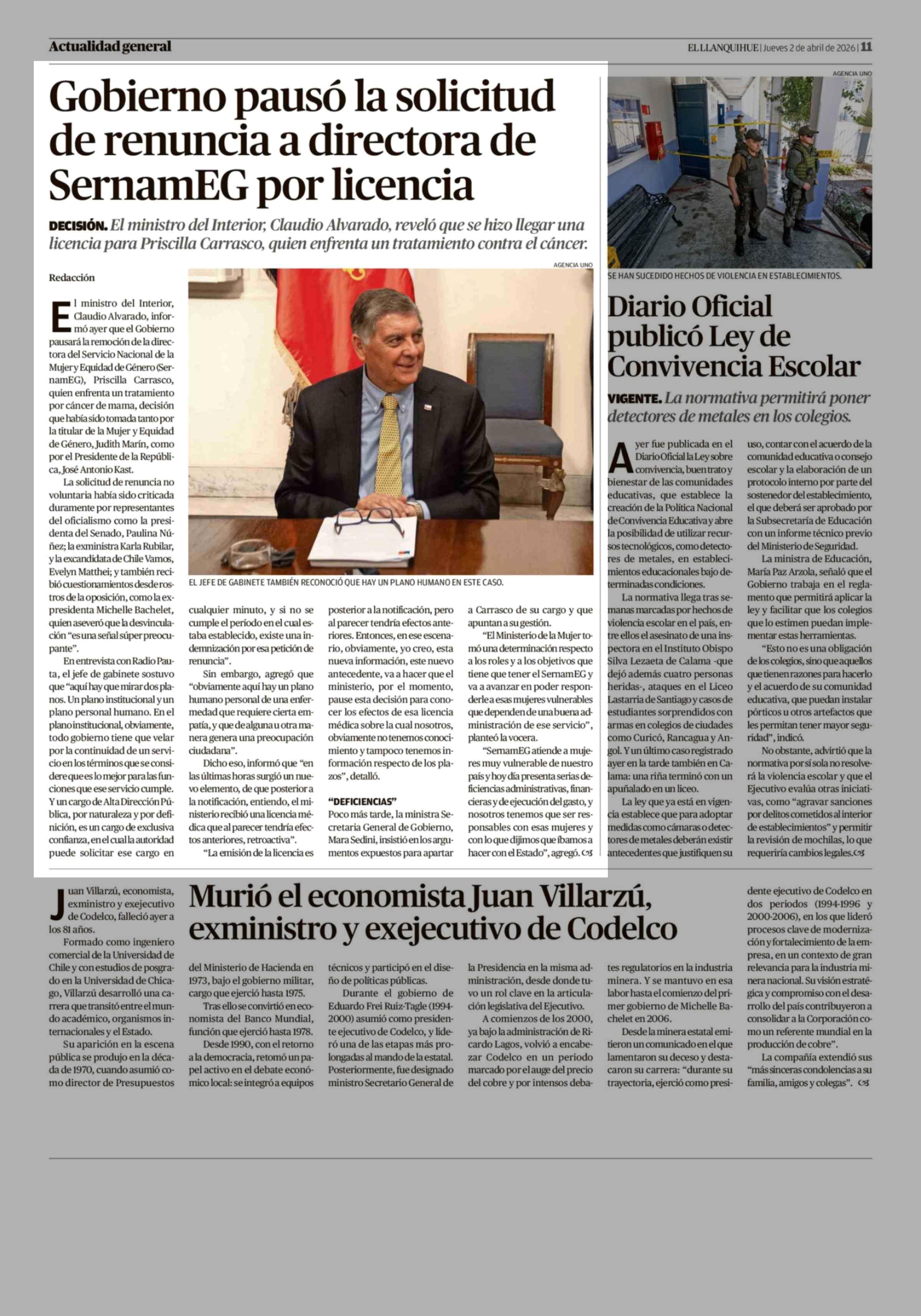 Gobierno pausó la solicitud de renuncia a directora de SernamEG por licencia 02-04-2026 El Llanquihue |