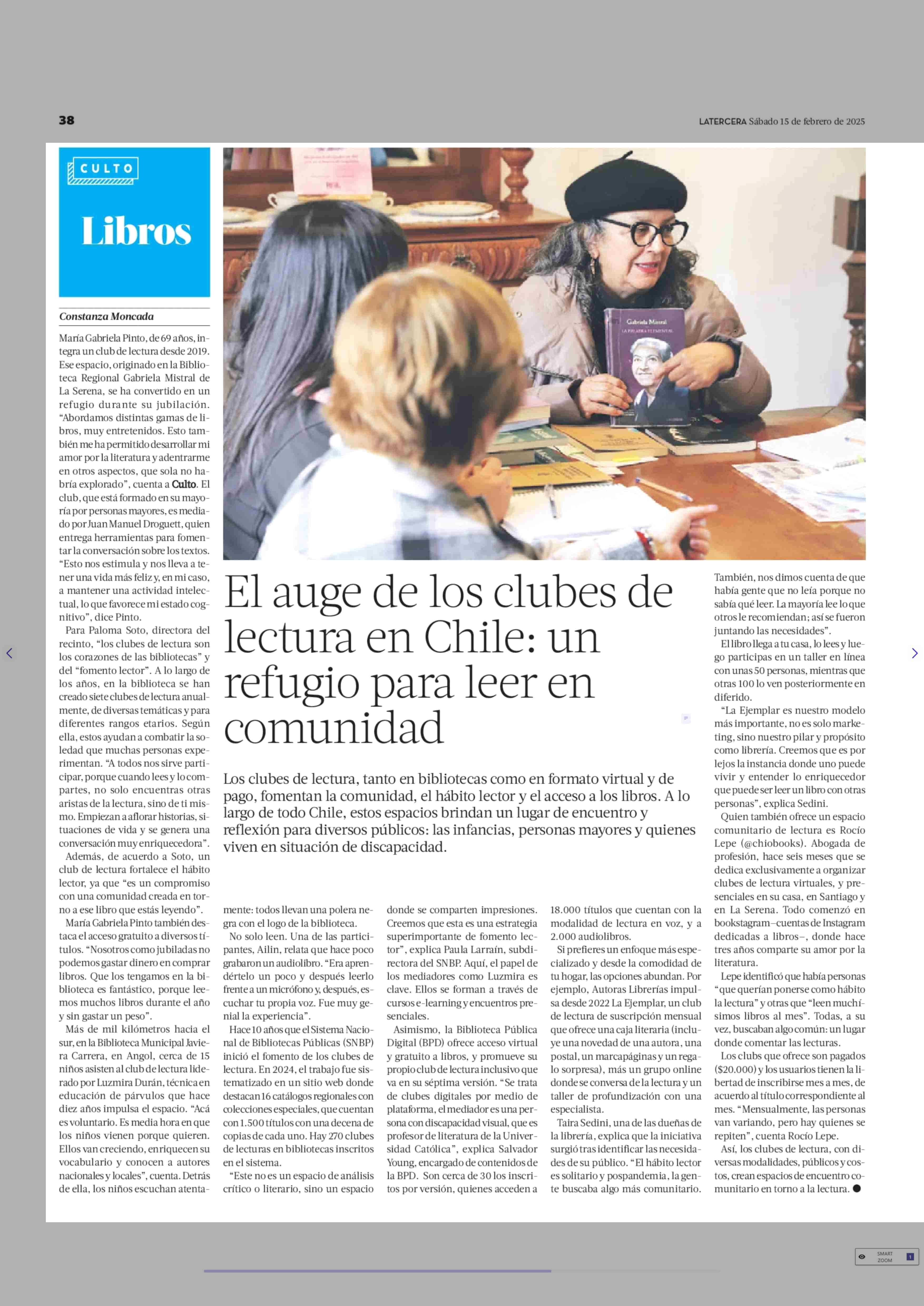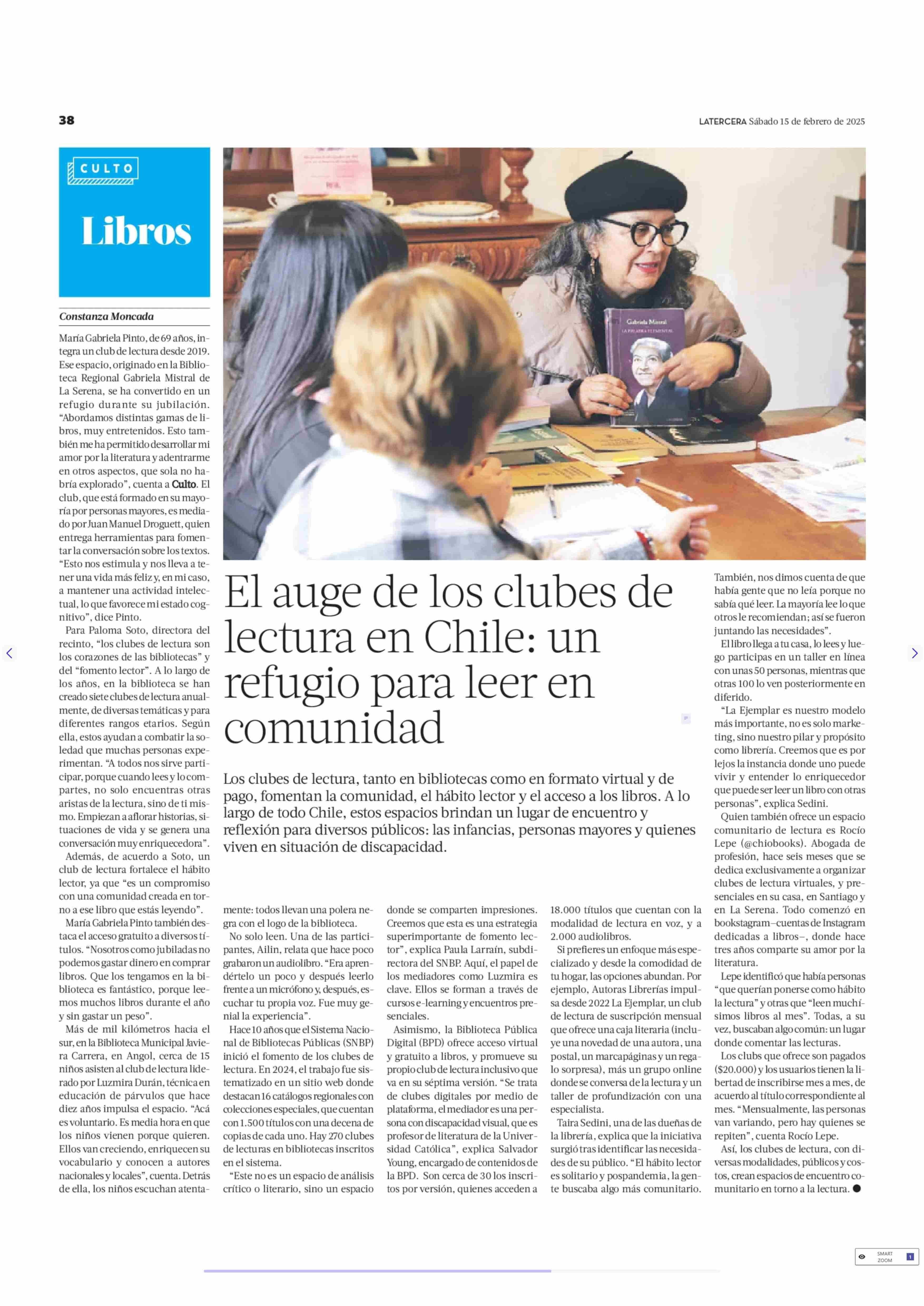 El auge de los clubes de lectura en Chile: un refugio para leer en comunidad 15-02-2025 La Tercera |