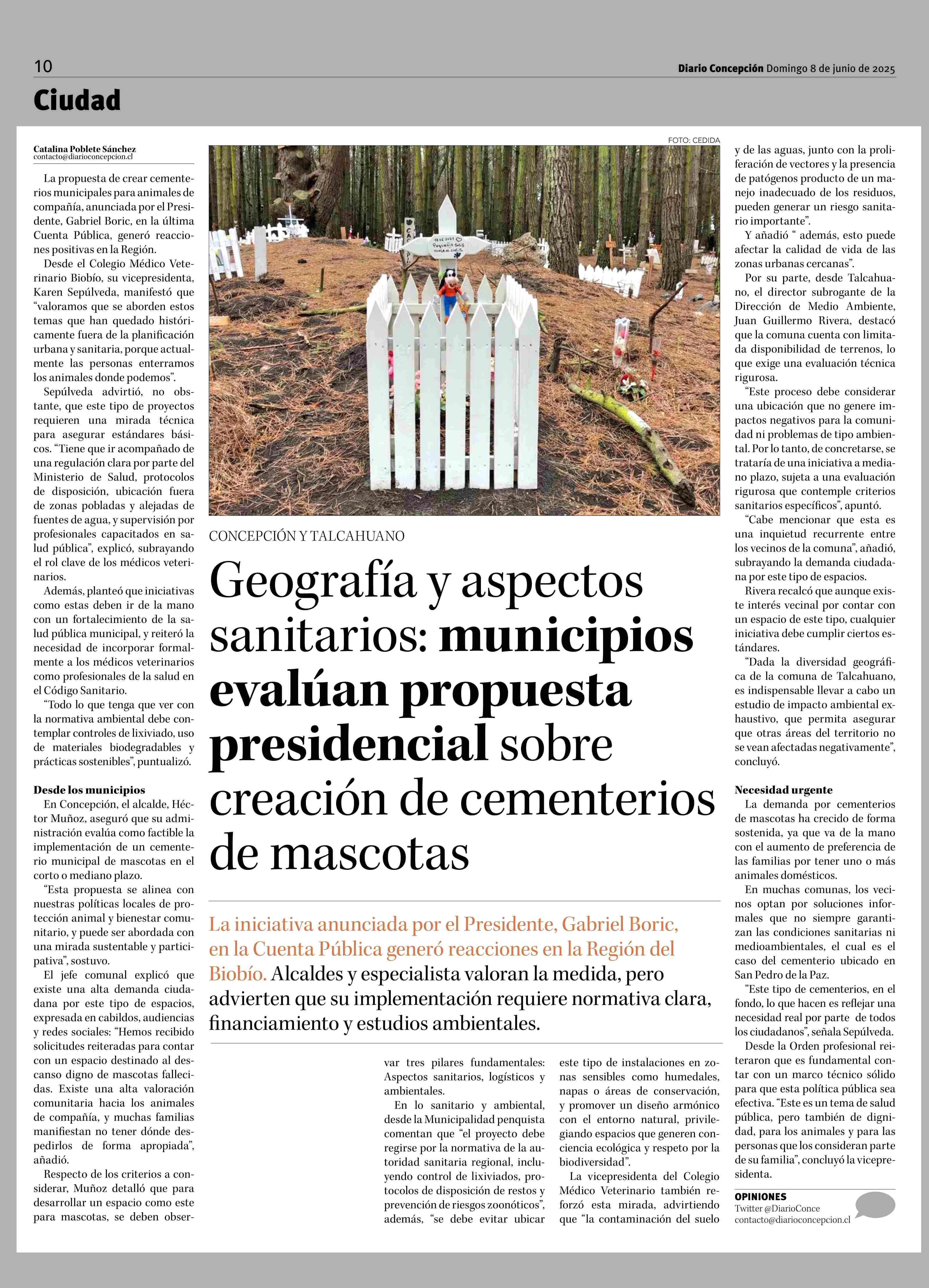 Geografía y aspectos sanitarios: municipios evalúan propuesta presidencial sobre creación de cementerios de mascotas 08-06-2025 Diario Concepción |