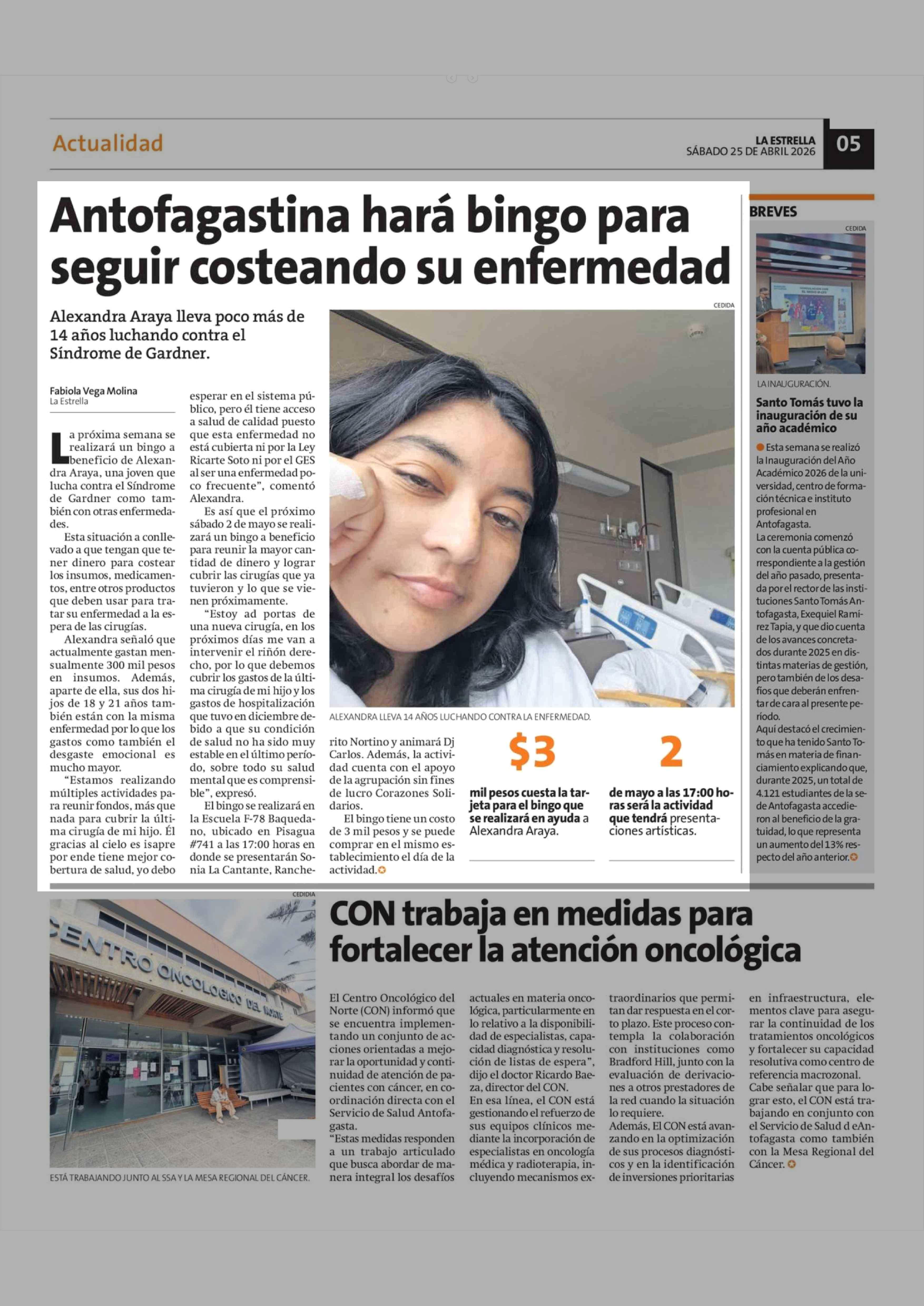 Antofagastina hará bingo para seguir costeando su enfermedad 25-04-2026 La Estrella de Antofagasta |