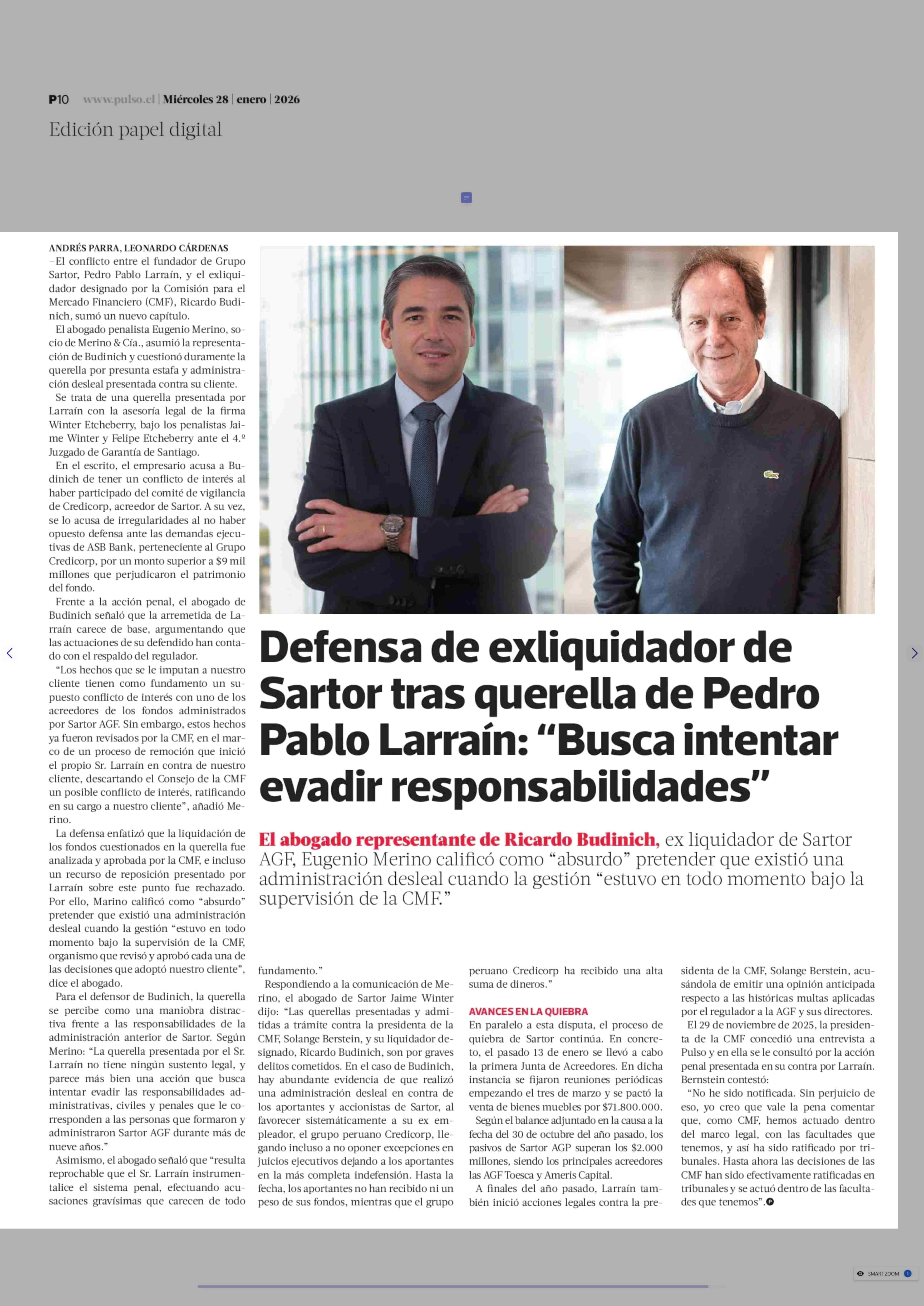 Título: Defensa de exliquidador de Sartor tras querella de Pedro Pablo Larraín: "Busca intentar evadir responsabilidades"