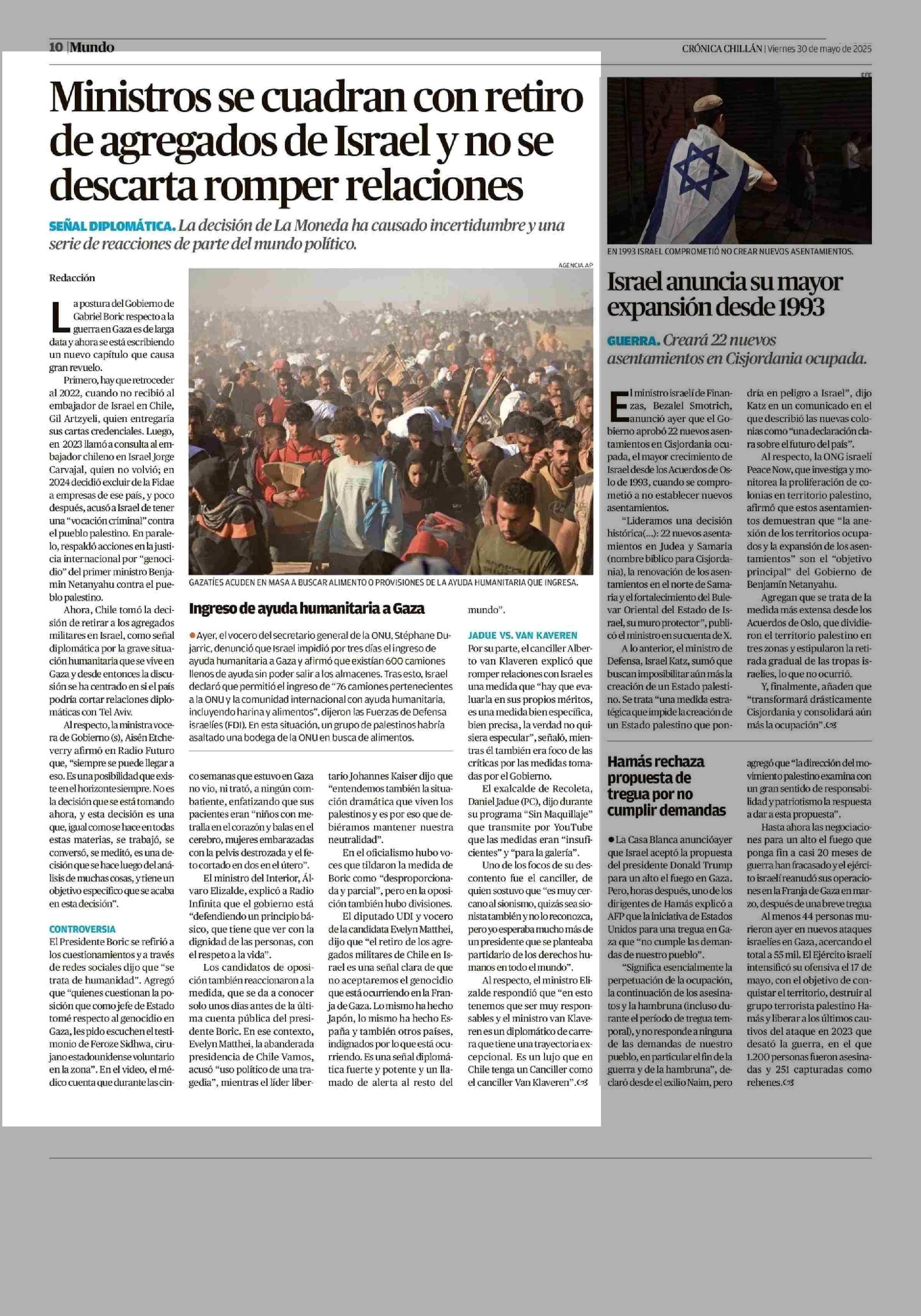 Ministros se cuadran con retiro de agregados de Israel y no se descarta romper relaciones 30-05-2025 Crónica de Chillán |