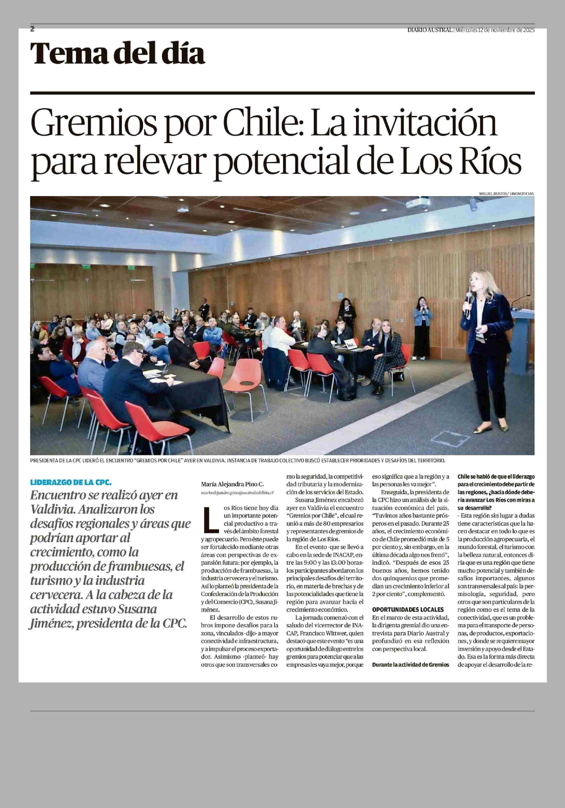 Título: Gremios por Chile: La invitación para relevar potencial de Los Ríos