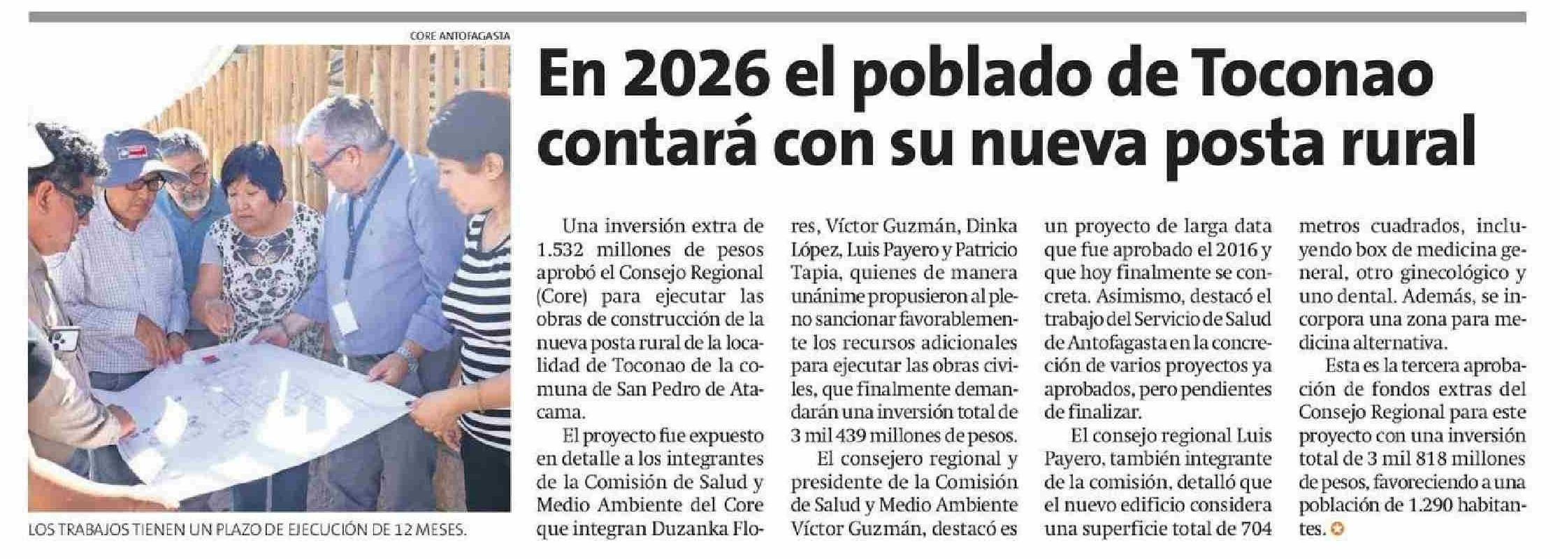 En 2026 el poblado de Toconao contará con su nueva posta rural 14-06-2025 La Estrella de Antofagasta |