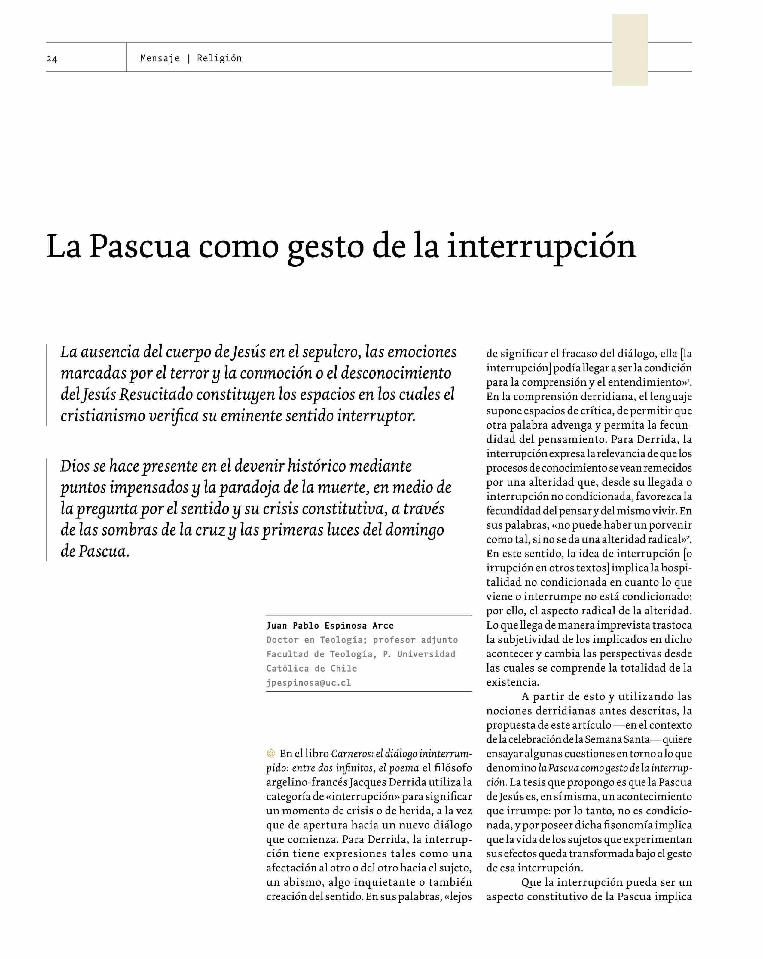 La Pascua como gesto de la interrupción 14-04-2025 Revista Mensaje |