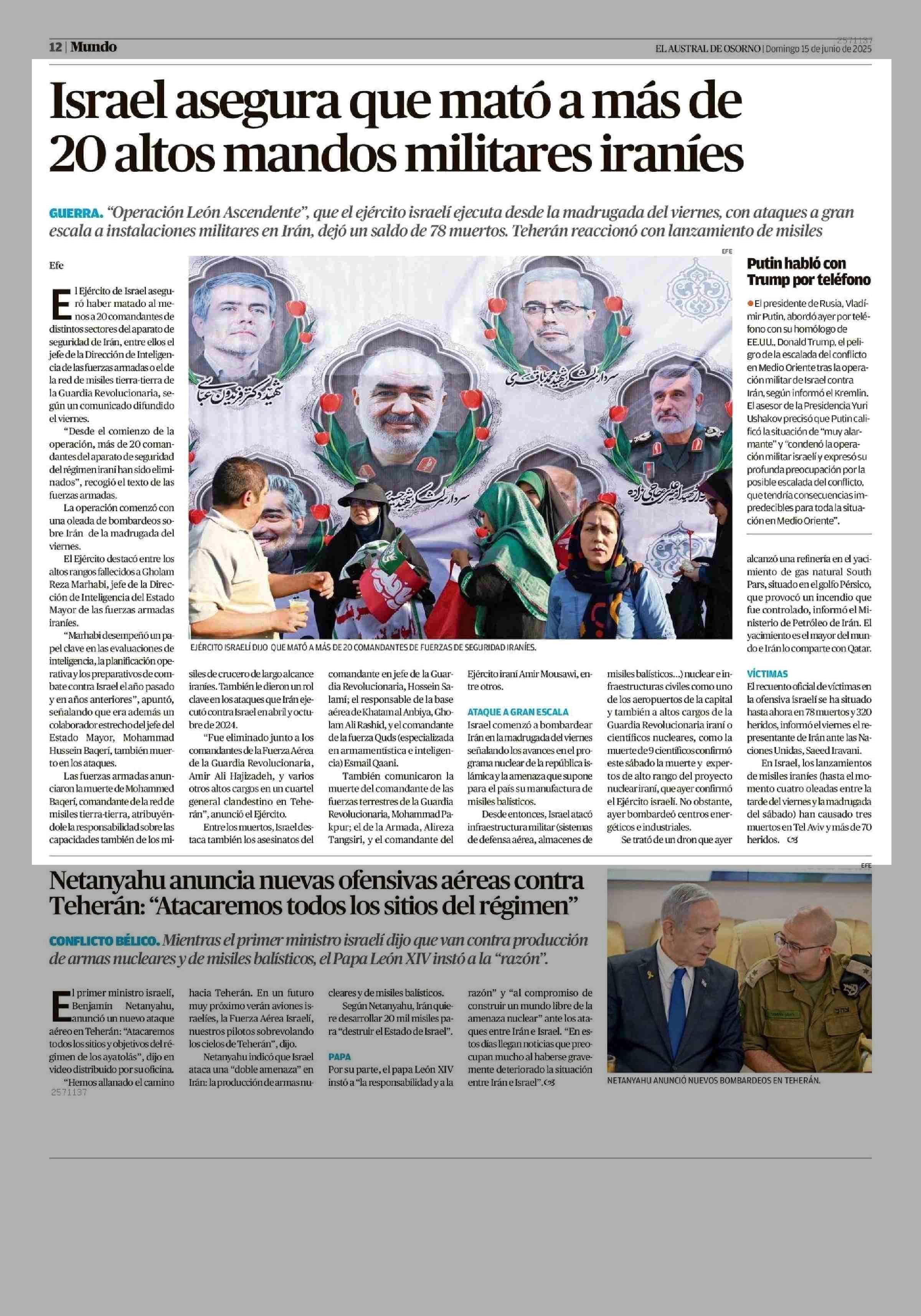 Título: Israel asegura que mató a más de 20 altos mandos militares iraníes