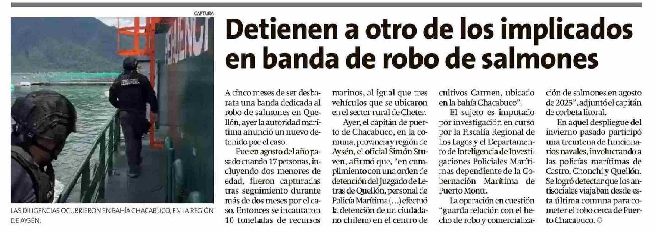 Detienen a otro de los implicados en banda de robo de salmones 24-01-2026 La Estrella de Chiloé |
