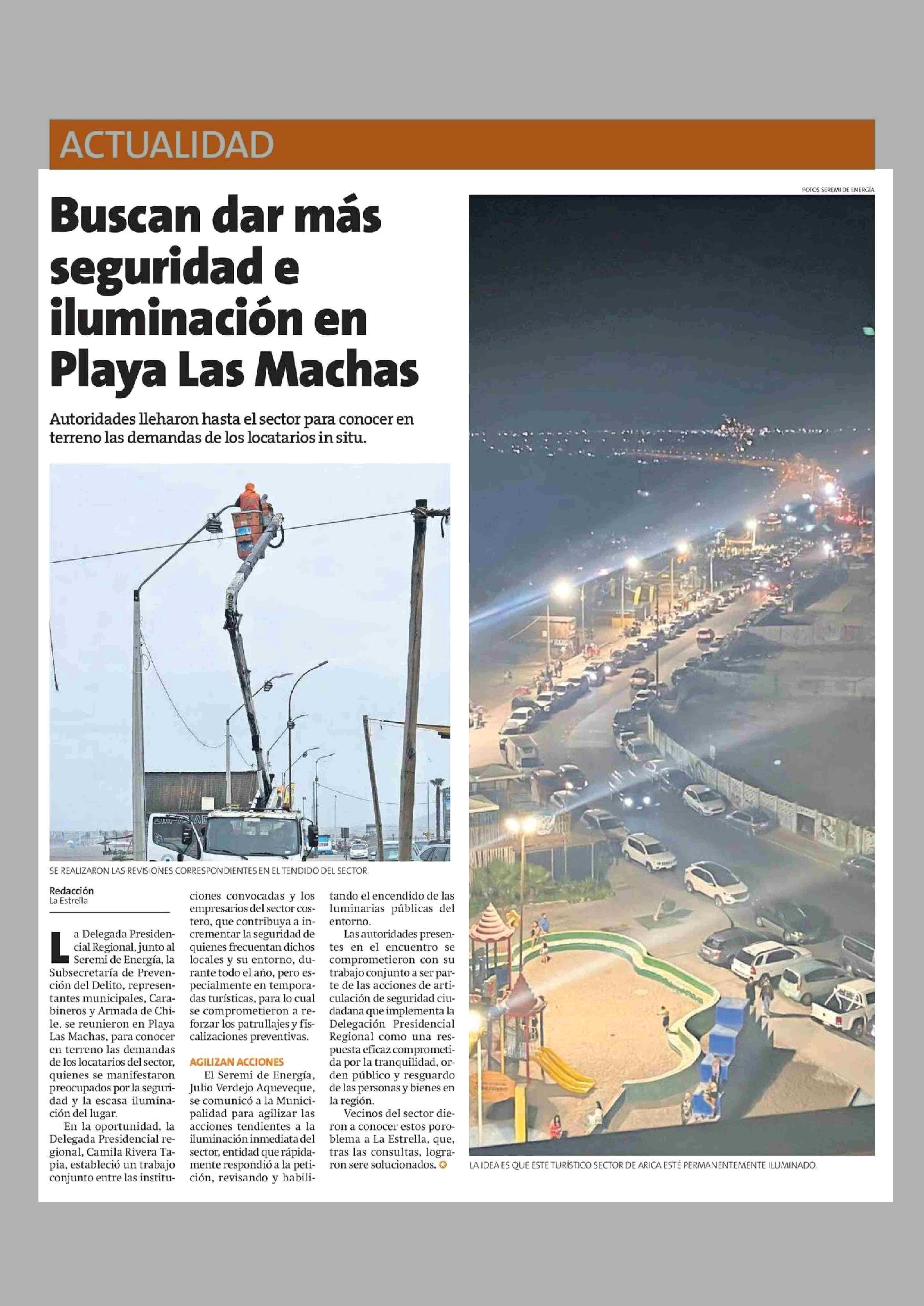 Buscan dar más seguridad e iluminación en Playa Las Machas 10-01-2025 La Estrella de Arica |