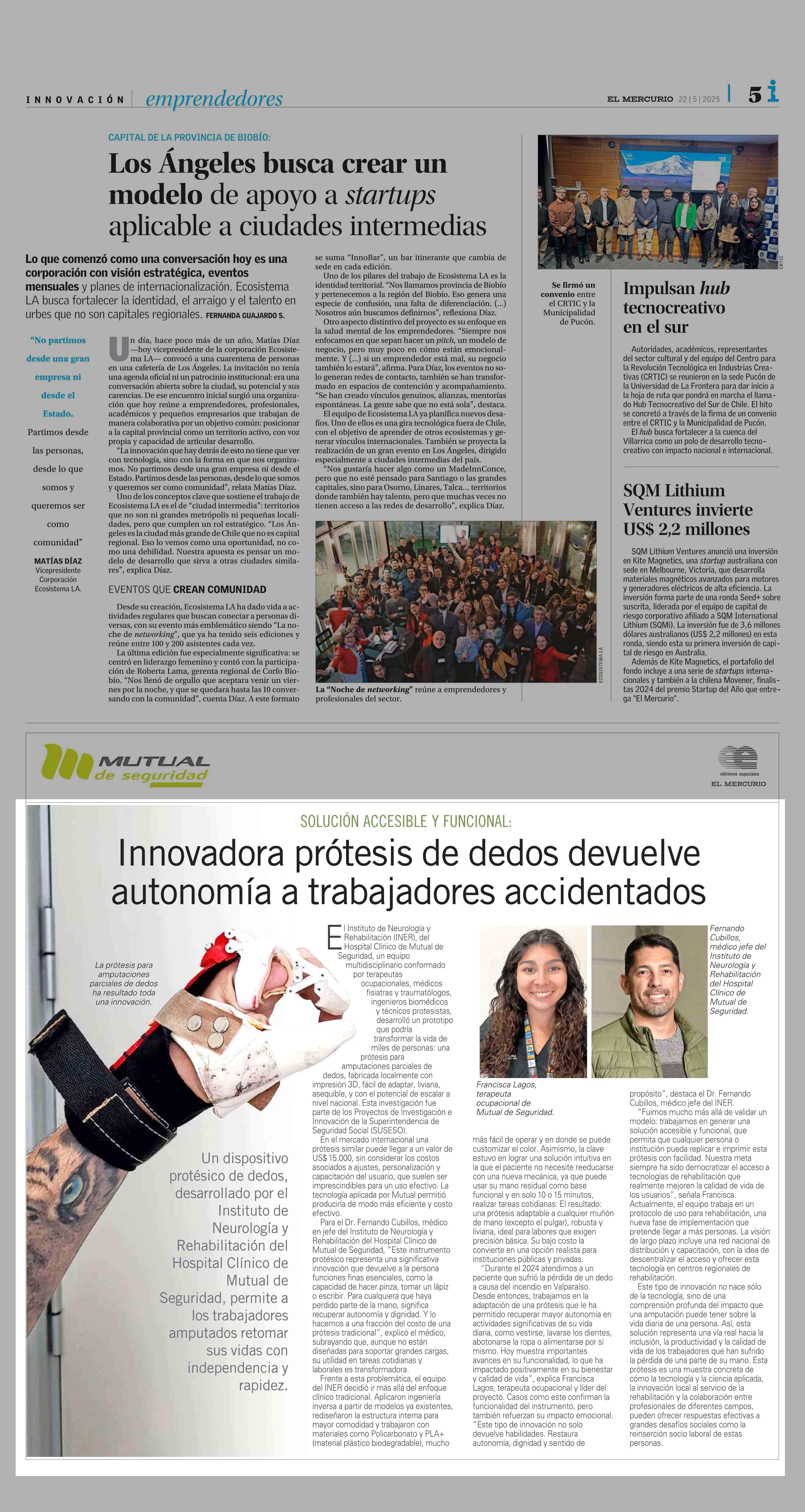 Innovadora prótesis de dedos devuelve autonomía a trabajadores accidentados 22-05-2025 El Mercurio |