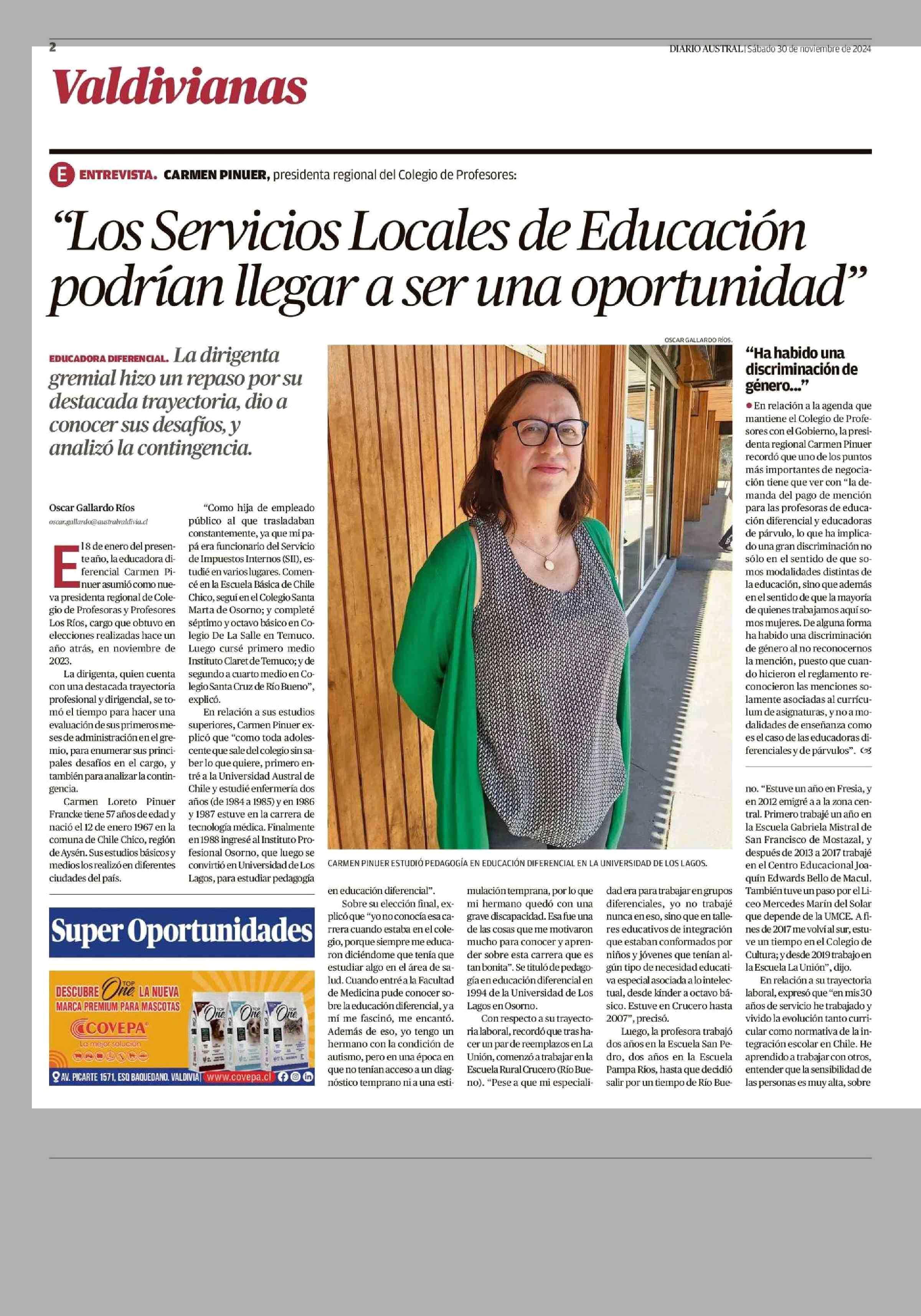 “Los Servicios Locales de Educación podrían llegar a ser una oportunidad” 30-11-2024 Diario Austral Región de Los Ríos |
