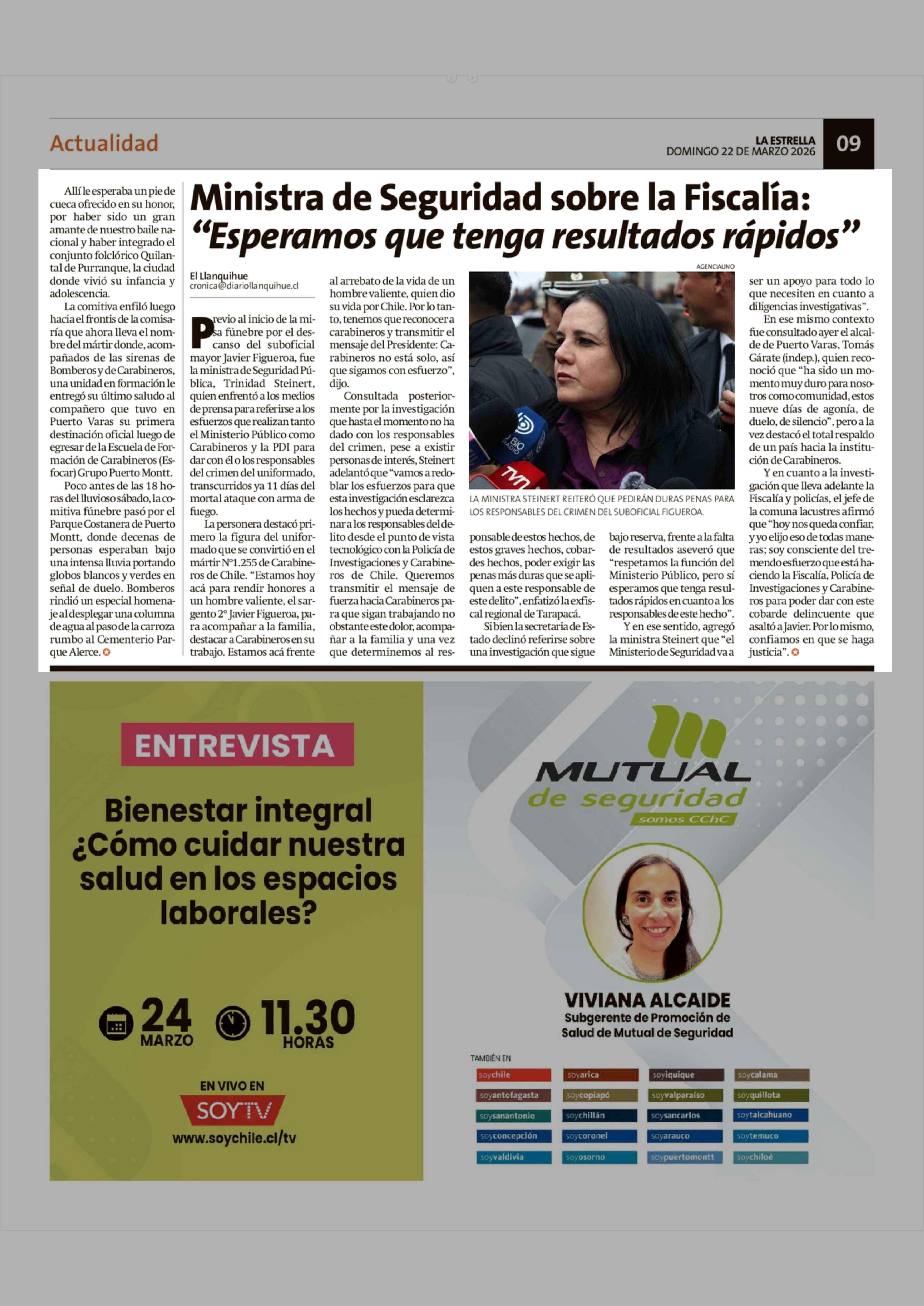 Ministra de Seguridad sobre la Fiscalía: "Esperamos que tenga resultados rápidos" 22-03-2026 La Estrella de Chiloé |