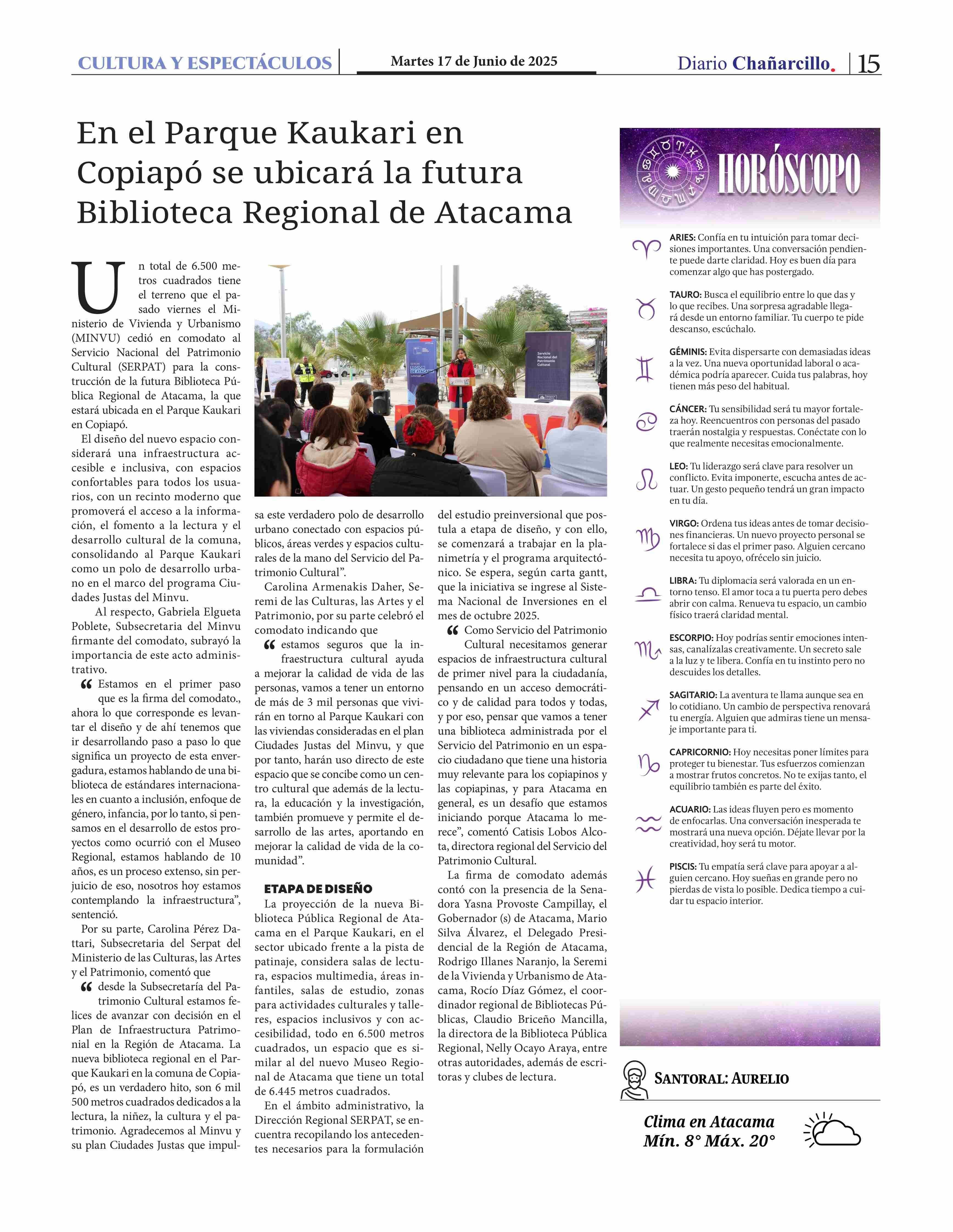 En el Parque Kaukari en Copiapó se ubicará la futura Biblioteca Regional de Atacama 17-06-2025 Diario Chañarcillo |