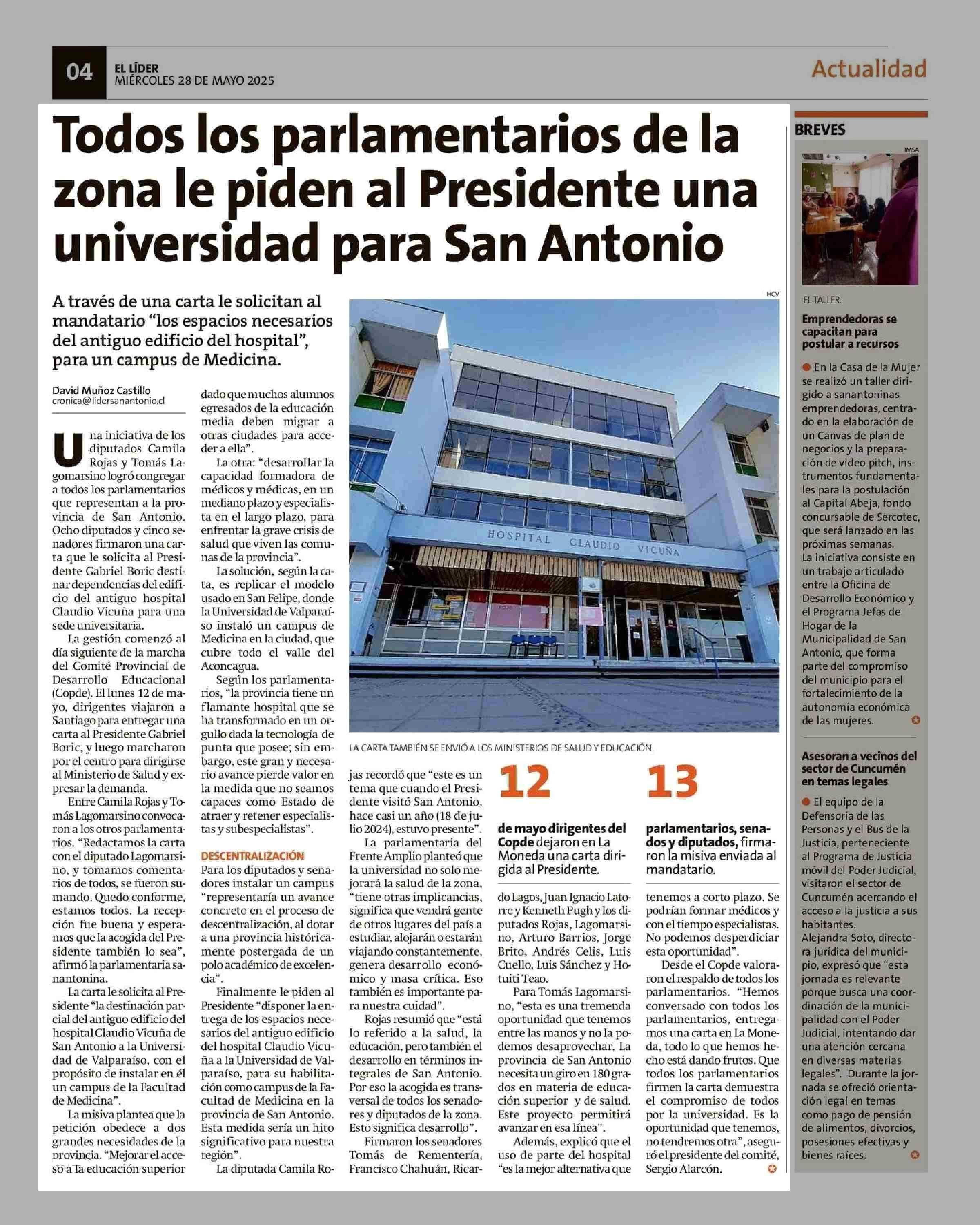 Todos los parlamentarios de la zona le piden al Presidente una universidad para San Antonio 28-05-2025 El Líder |