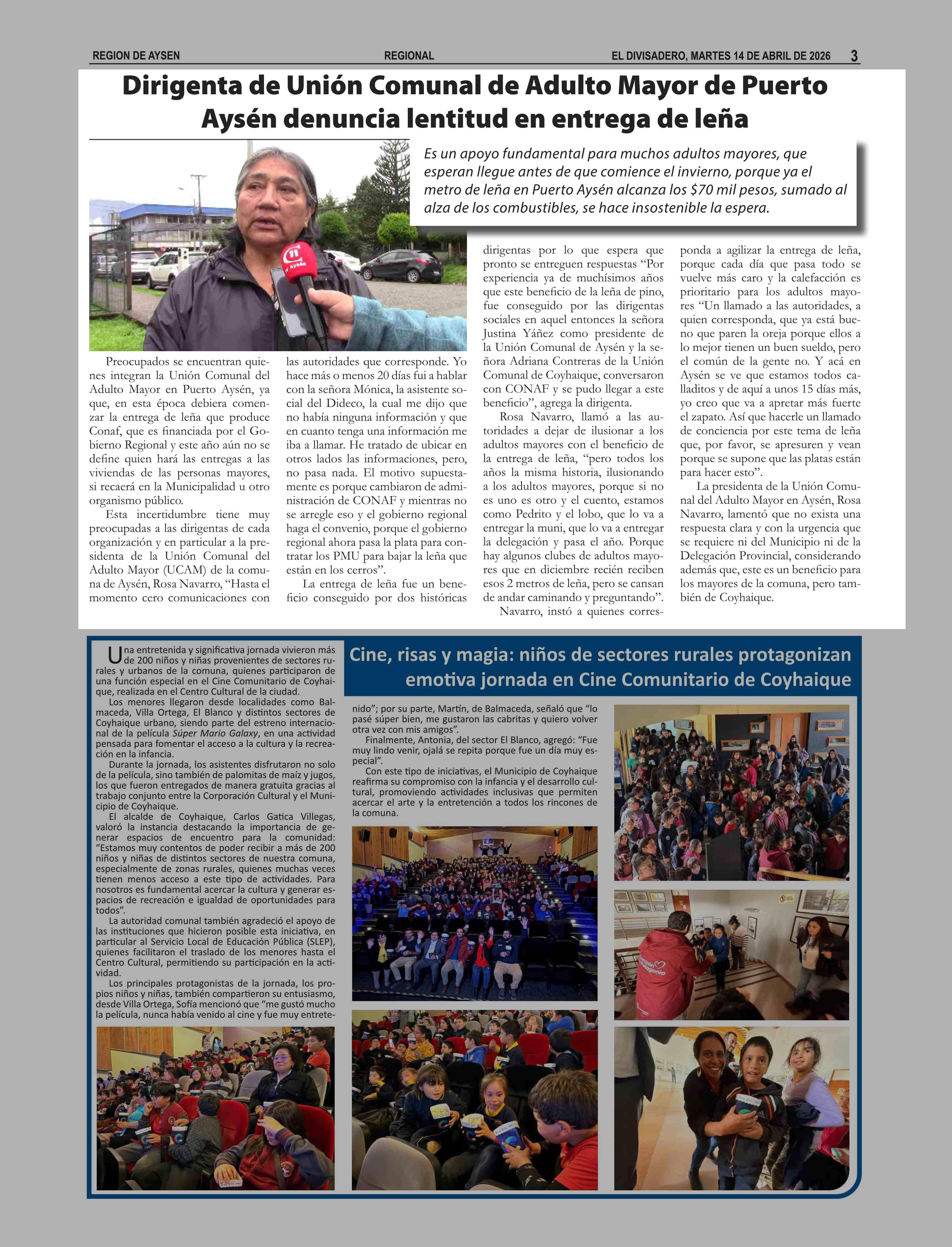 | Fecha: | 14-04-2026 | Sector: | Noticia general | Región: | Región Aysén del General Carlos Ibáñez del Campo |