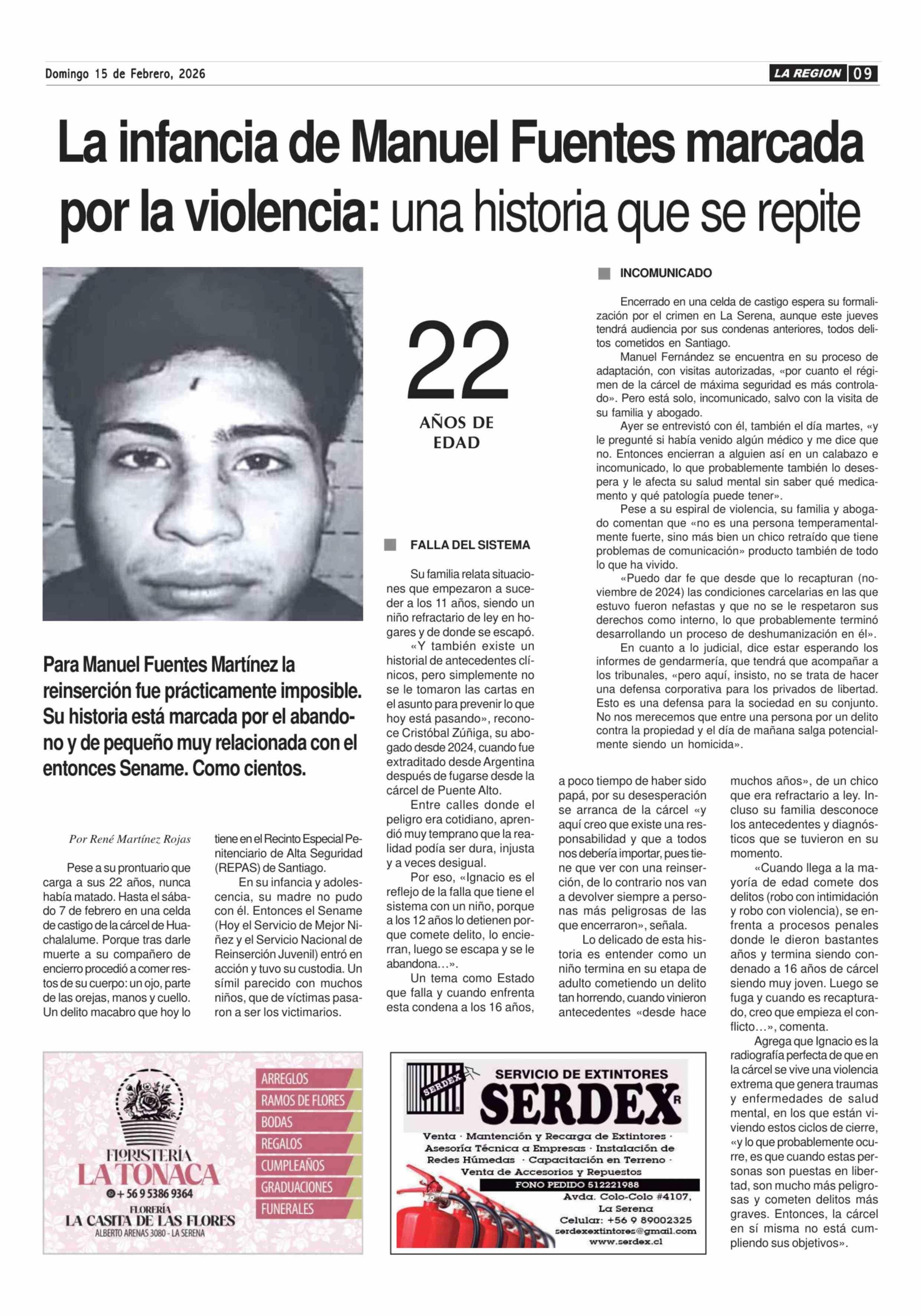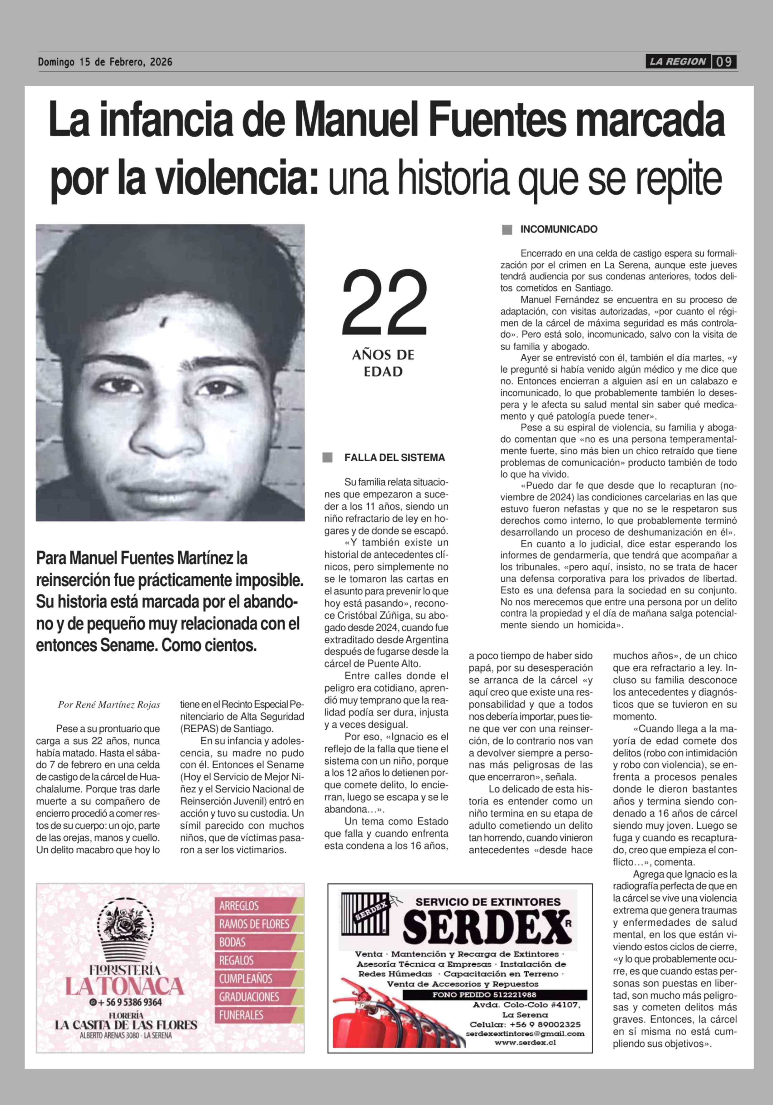 La infancia de Manuel Fuentes marcada por la violencia: una historia que se repite 15-02-2026 Diario la Región |