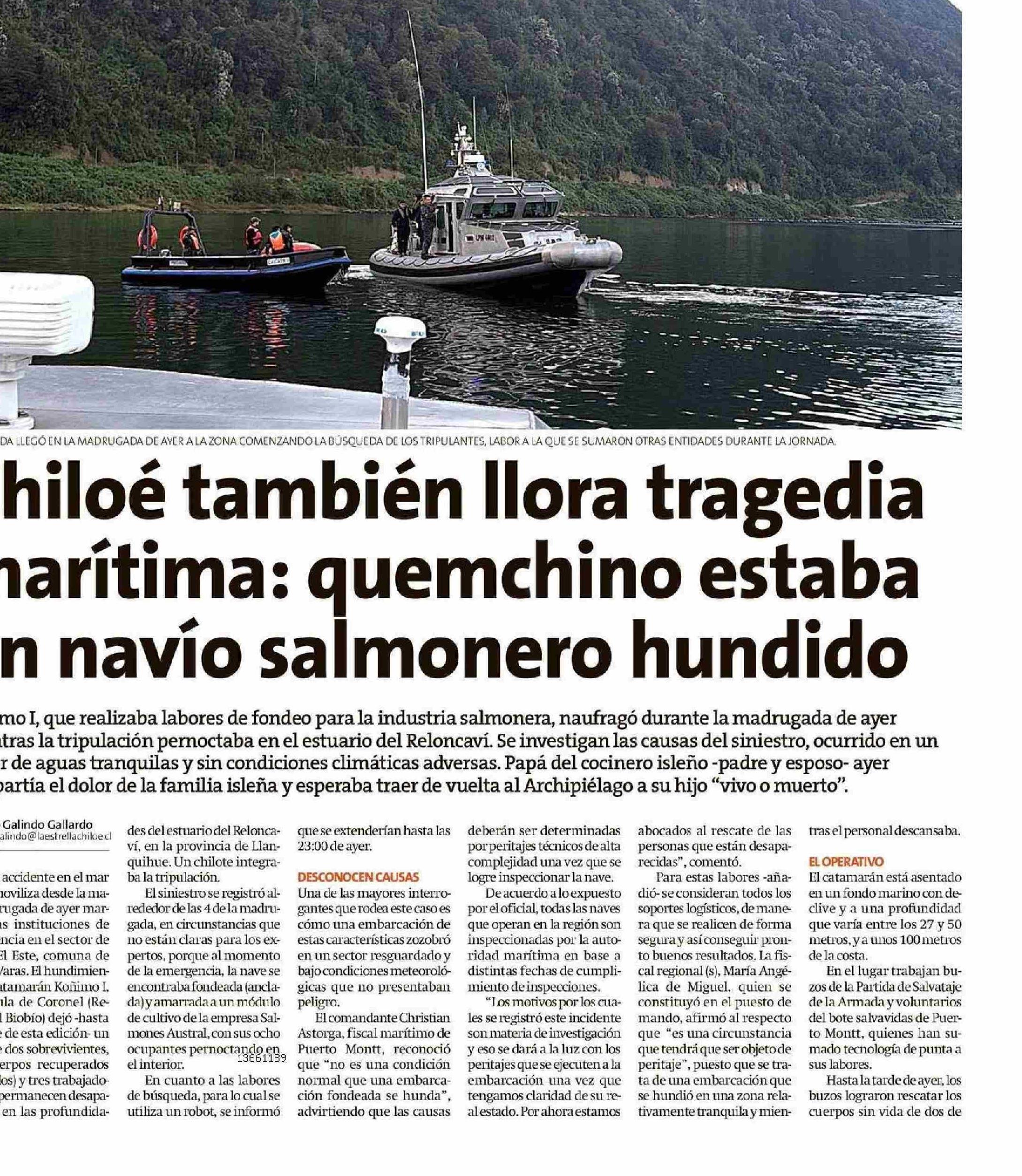 Título: Chiloé también llora tragedia marítima: quemchino estaba en navío salmonero hundido