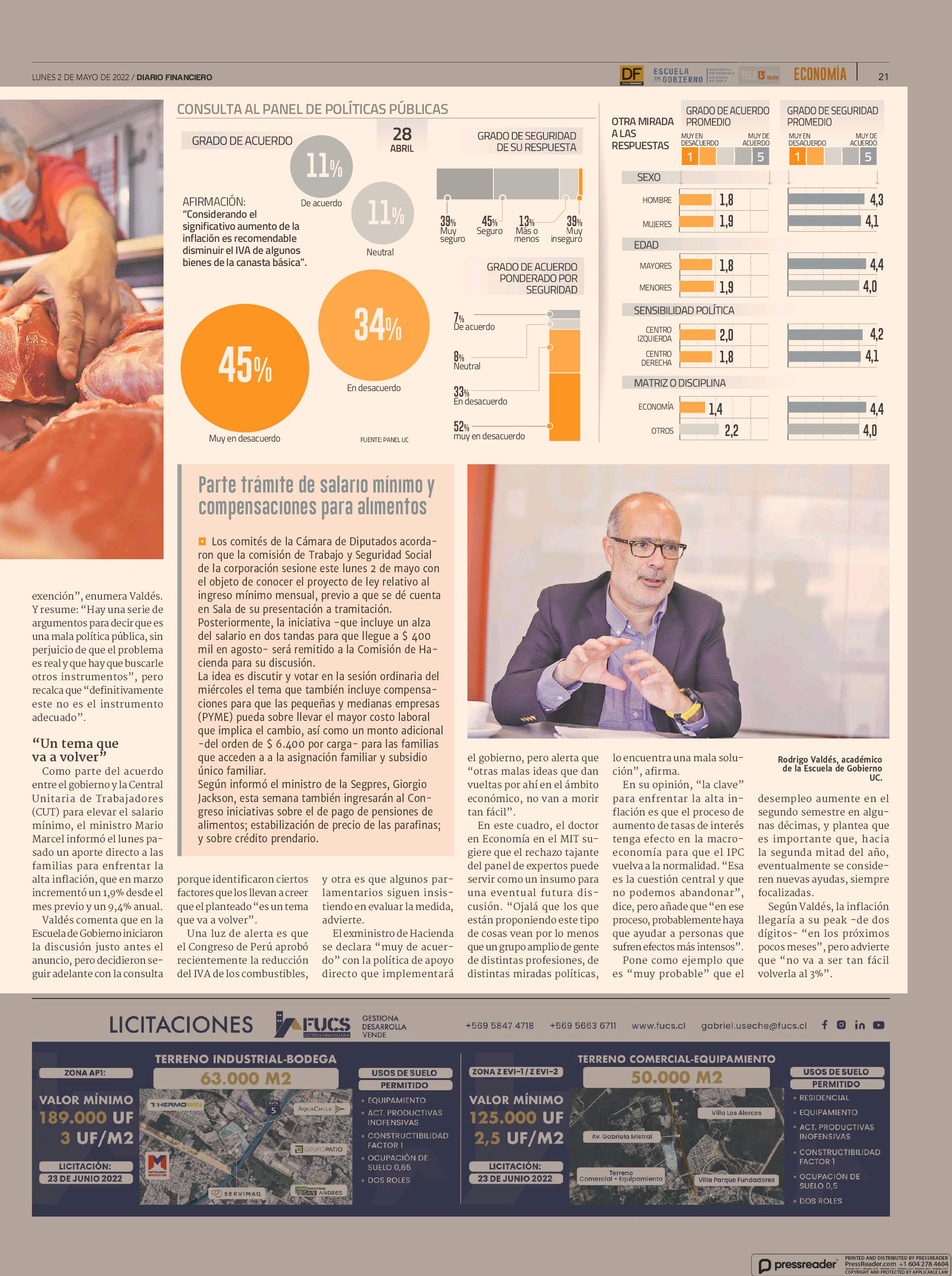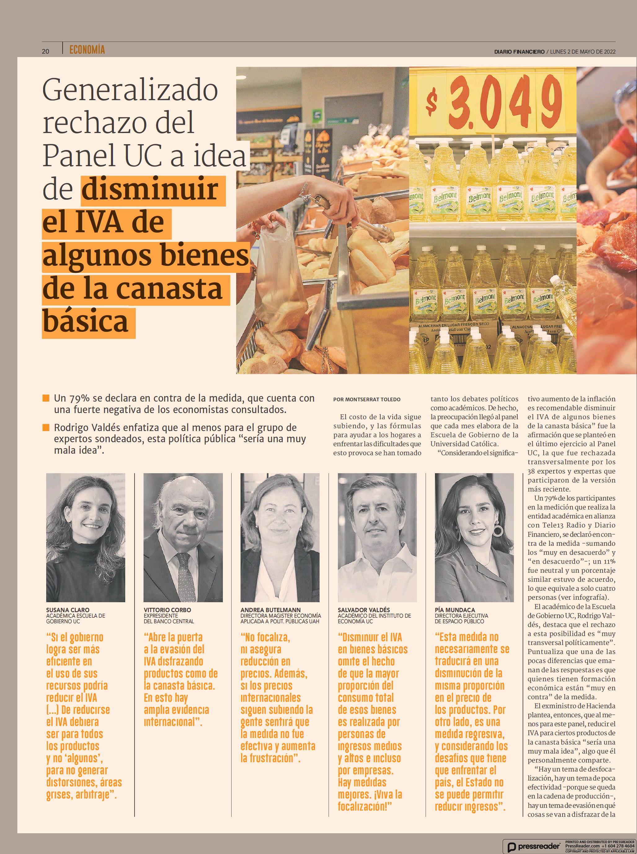 Generalizado rechazo del Panel UC a idea de disminuir el IVA de algunos bienes de la canasta básica 02-05-2022 Diario Financiero |