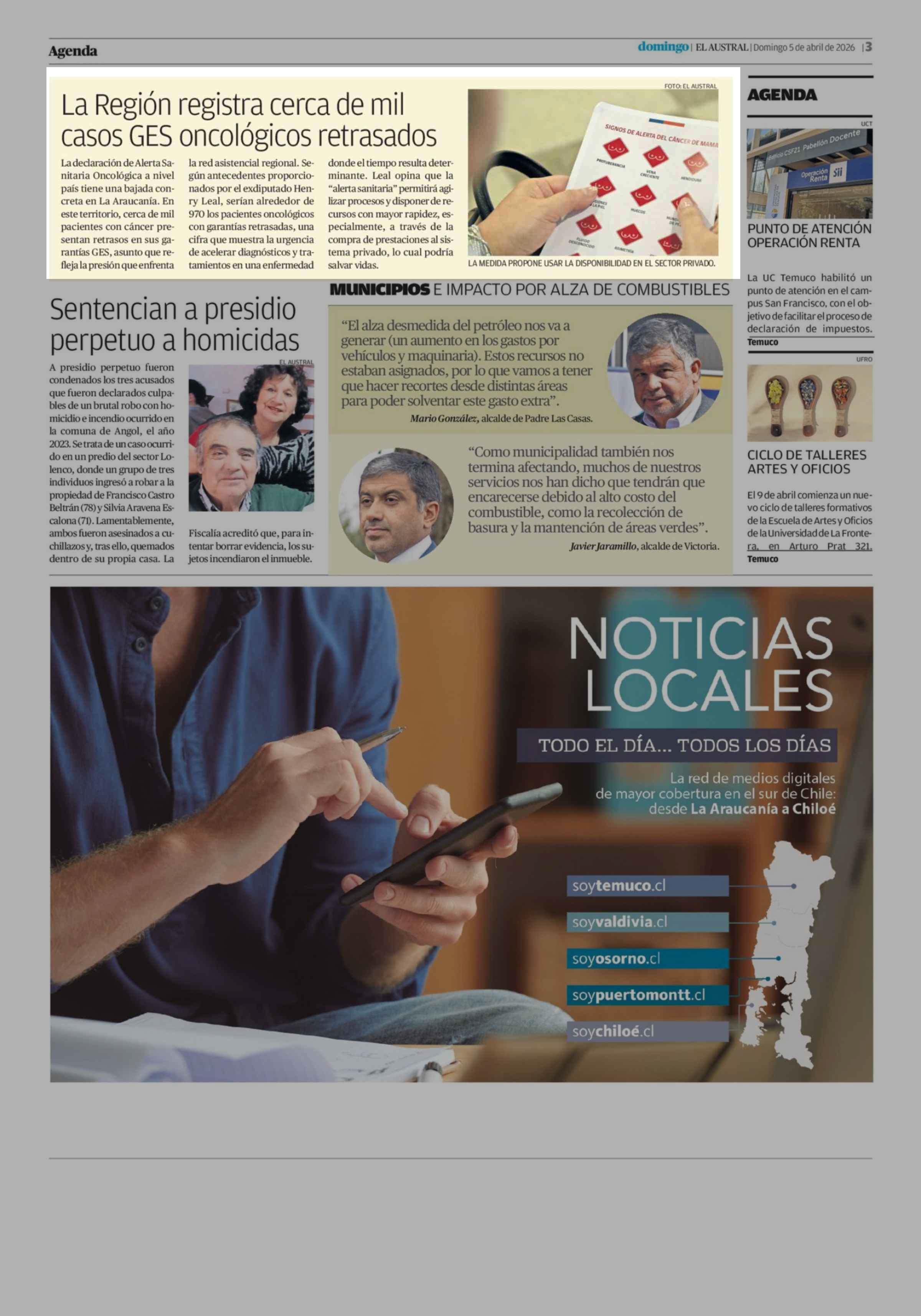 La Región registra cerca de mil casos GES oncológicos retrasados 05-04-2026 El Austral de la Araucanía |