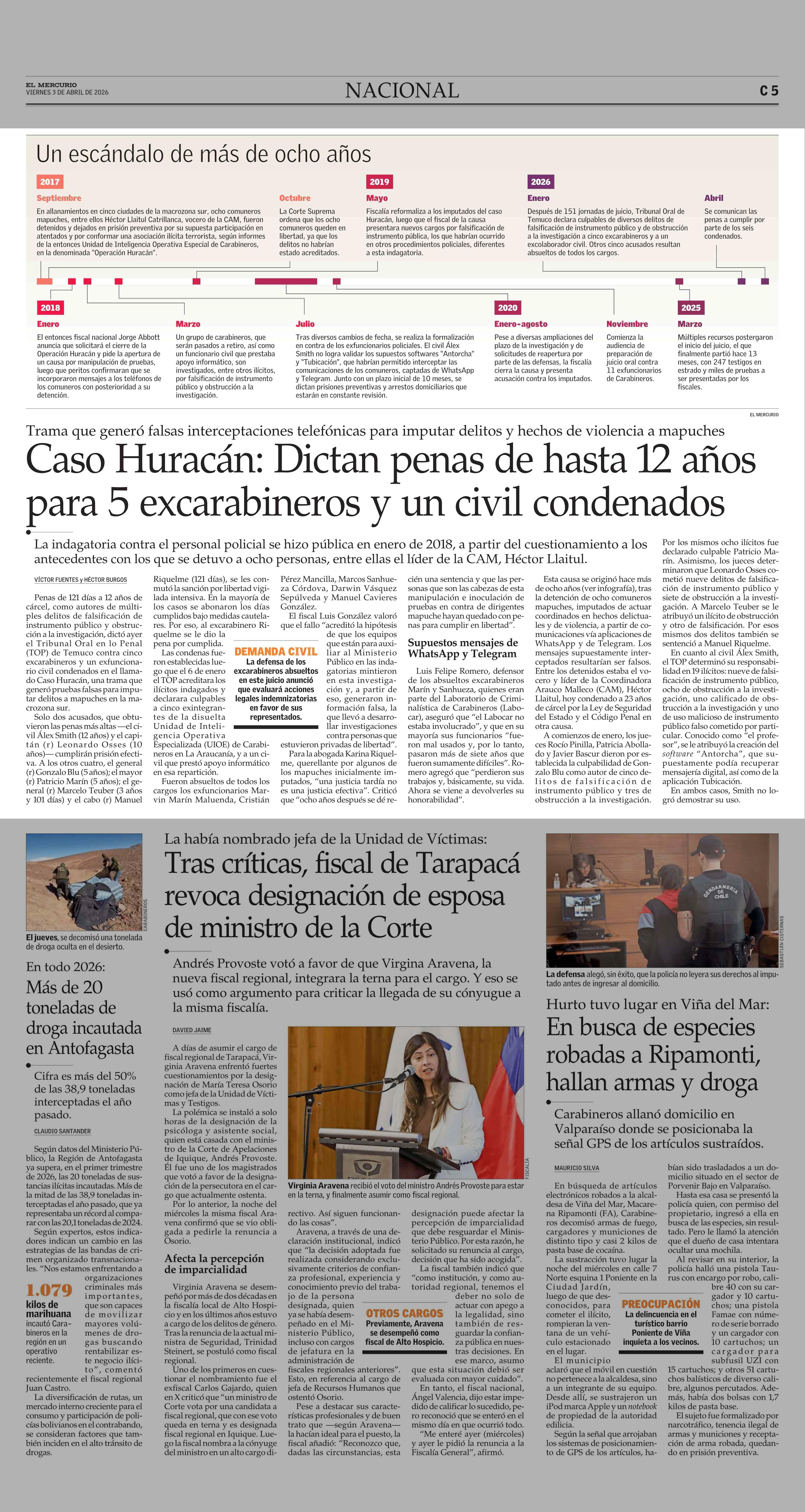 Título: Caso Huracán: Dictan penas de hasta 12 años para 5 excarabineros y un civil condenados
