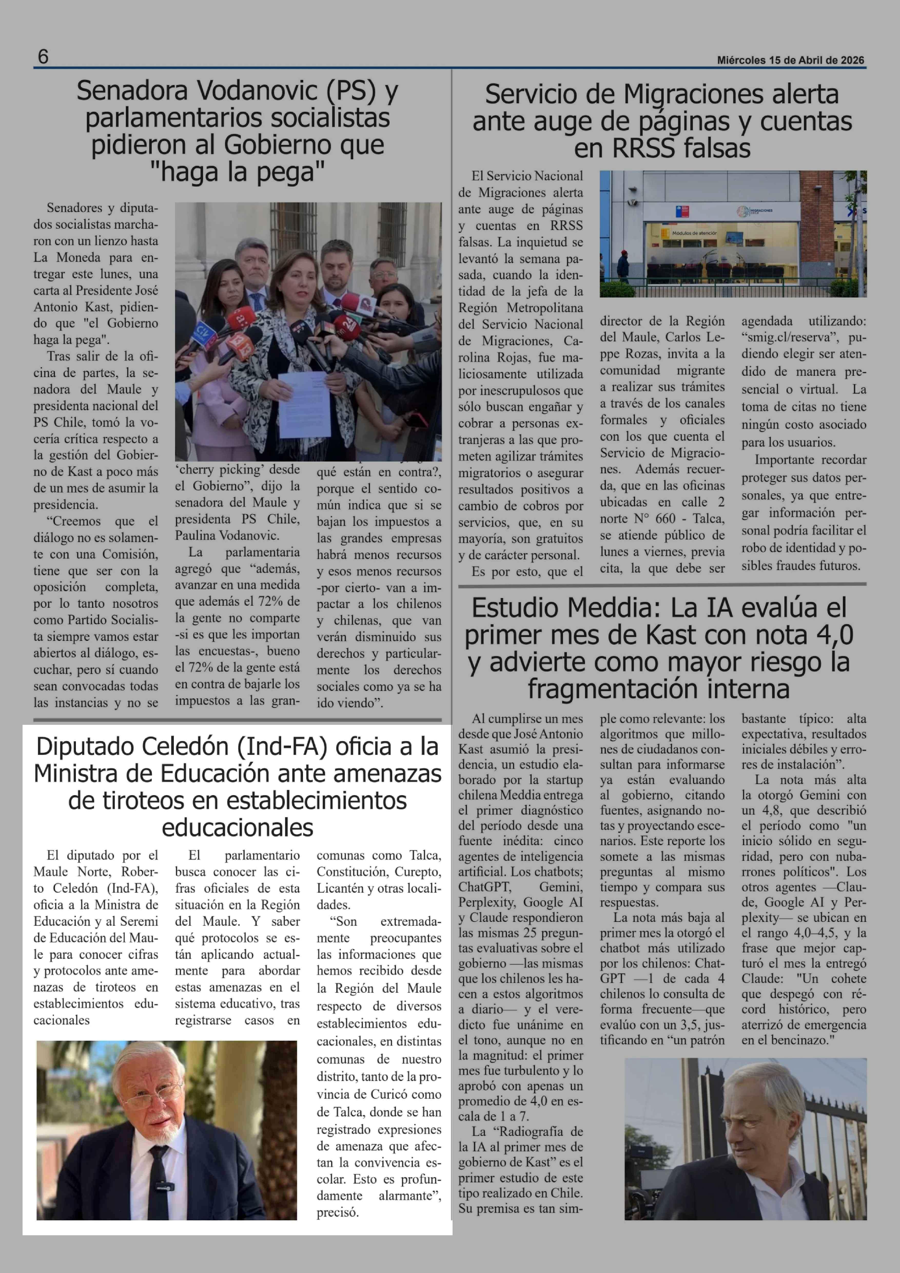 Fecha: 15-04-2026 Sector: Noticia general Región: Región del Maule