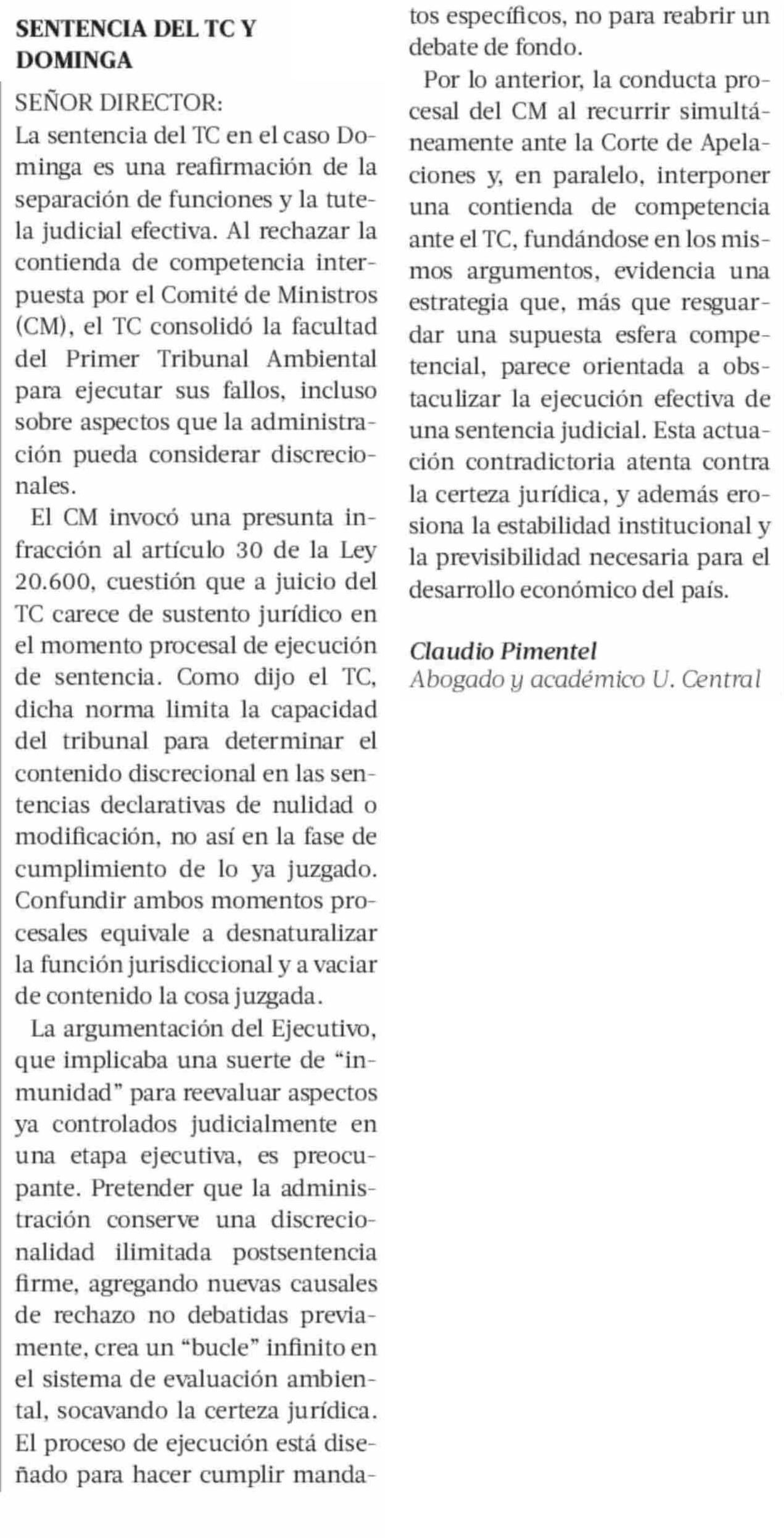 SENTENCIA DEL TC Y DOMINGA 15-06-2025 La Tercera |