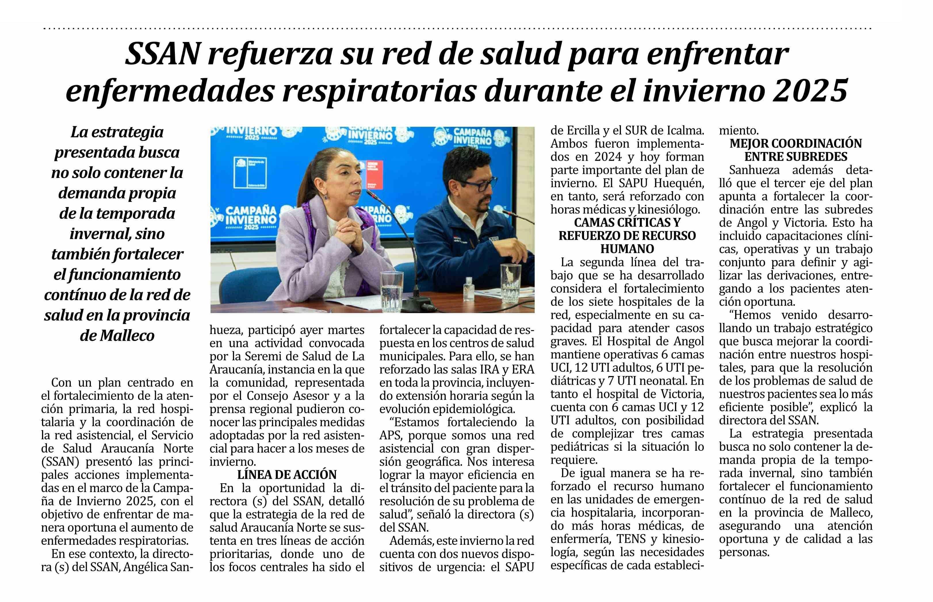 SSAN refuerza su red de salud para enfrentar enfermedades respiratorias durante el invierno 2025 14-05-2025 Las Noticias |