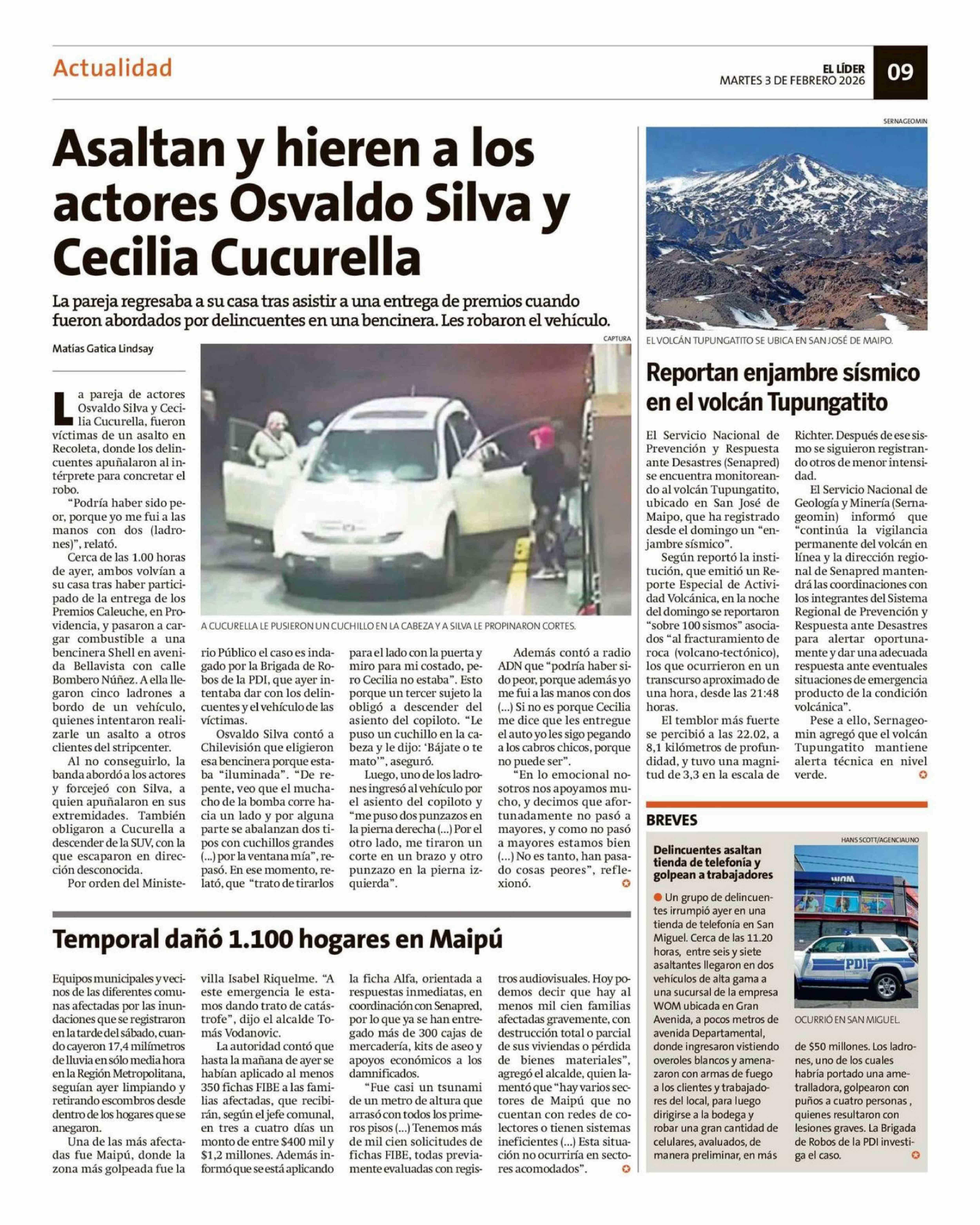 Reportan enjambre sísmico en el volcan Tupungatito 03-02-2026 El Líder |