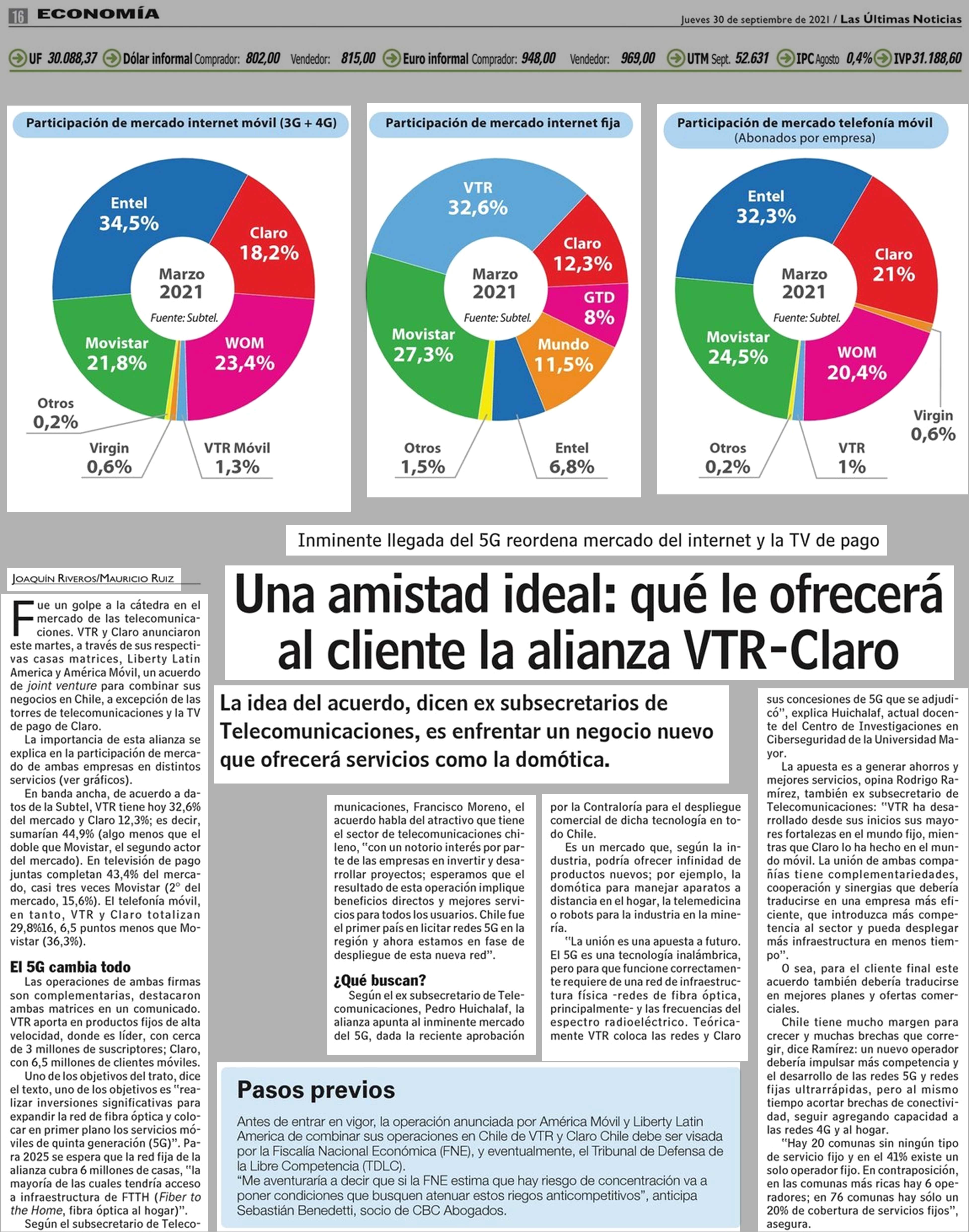 Una amistad ideal: qué le ofrecerá al cliente la alianza VTR-Claro 30-09-2021 Las Últimas Noticias |