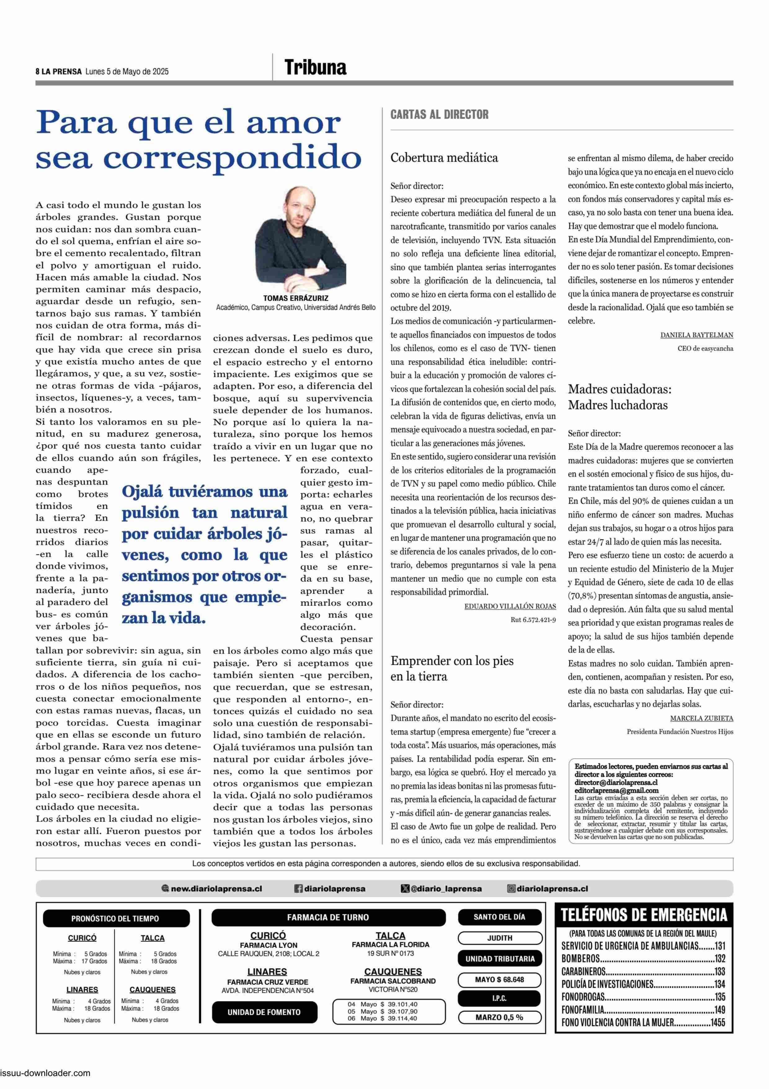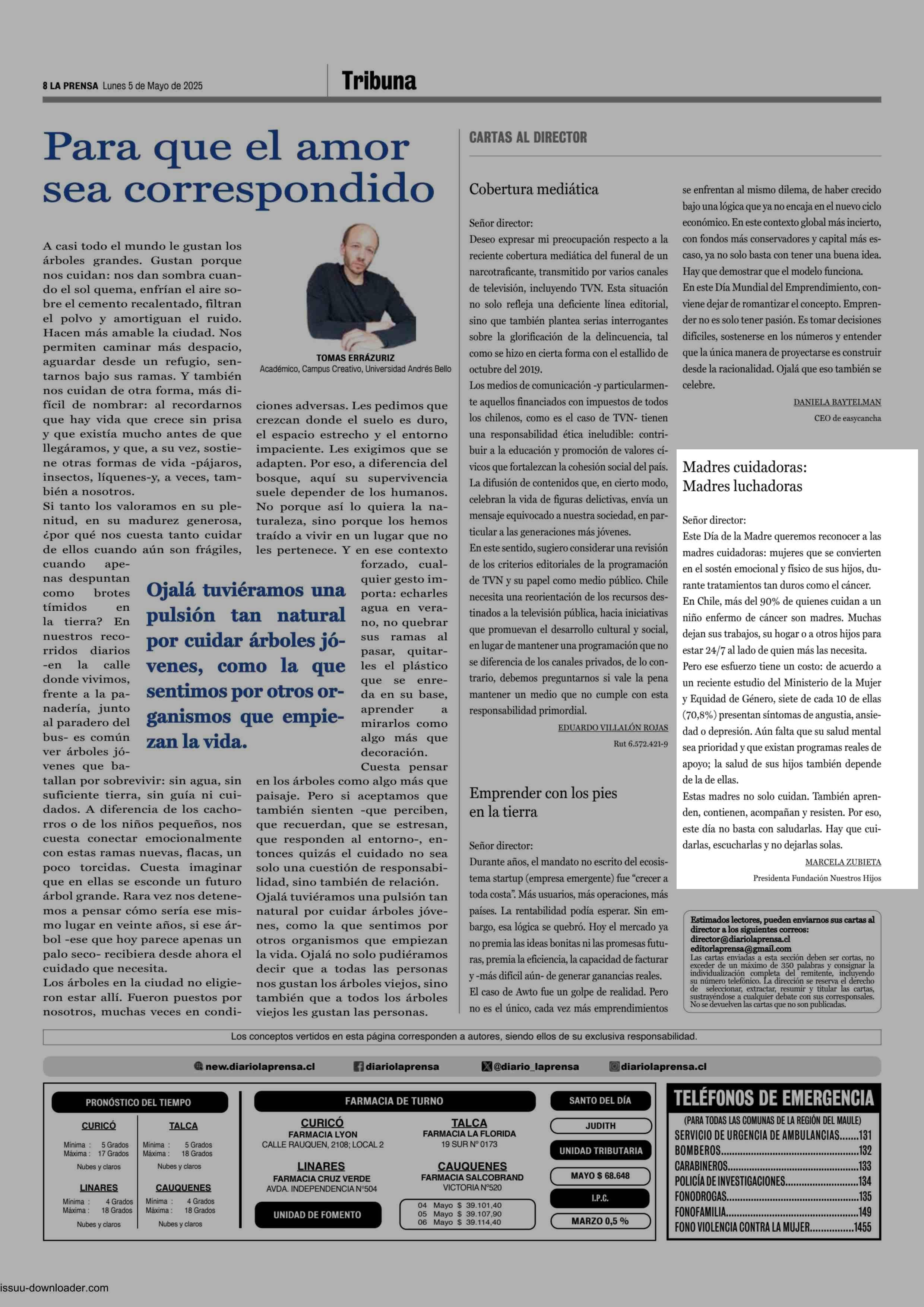 CARTAS: Madres cuidadoras: Madres luchadoras 05-05-2025 La Prensa de Curicó |
