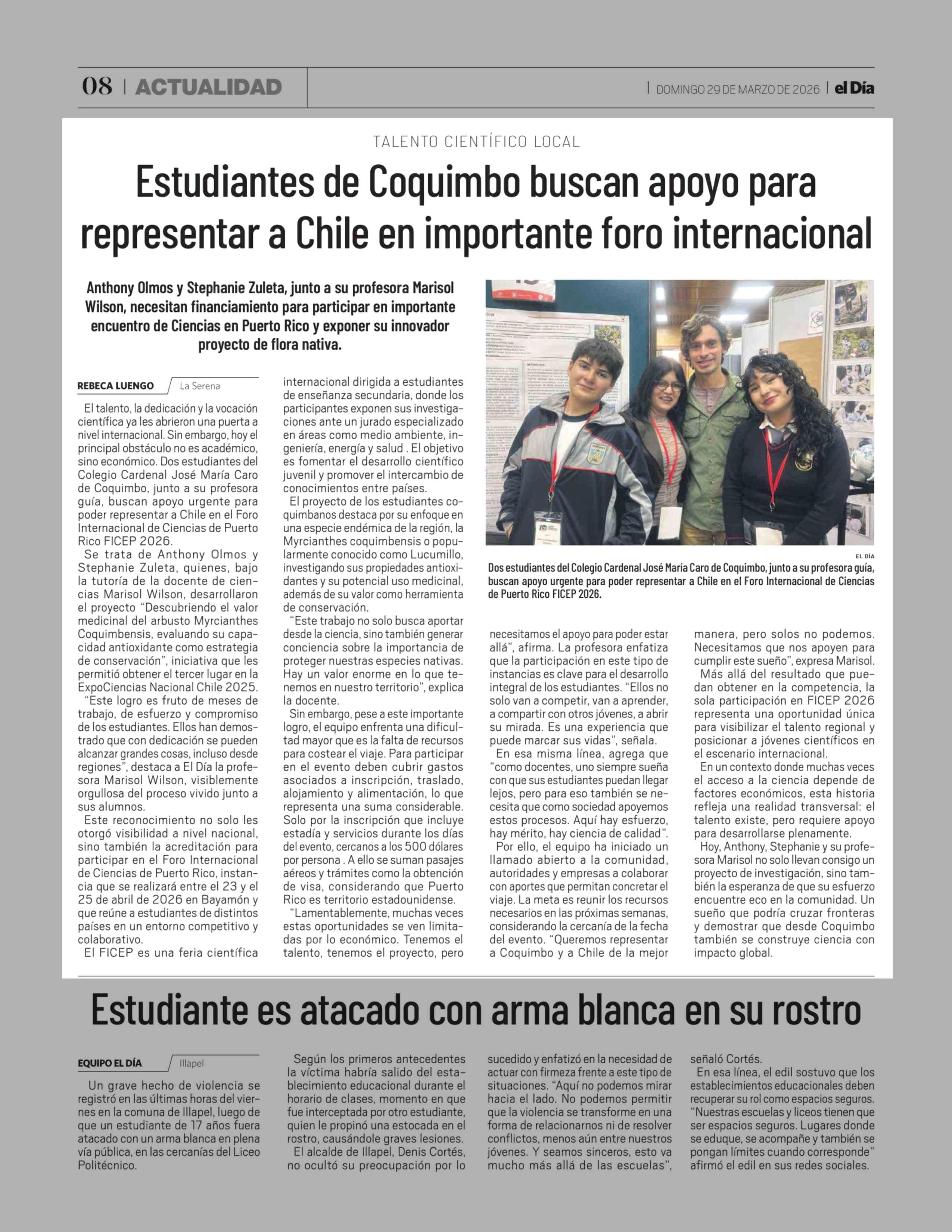 Estudiantes de Coquimbo buscan apoyo para representar a Chile en importante foro internacional 29-03-2026 El Día |