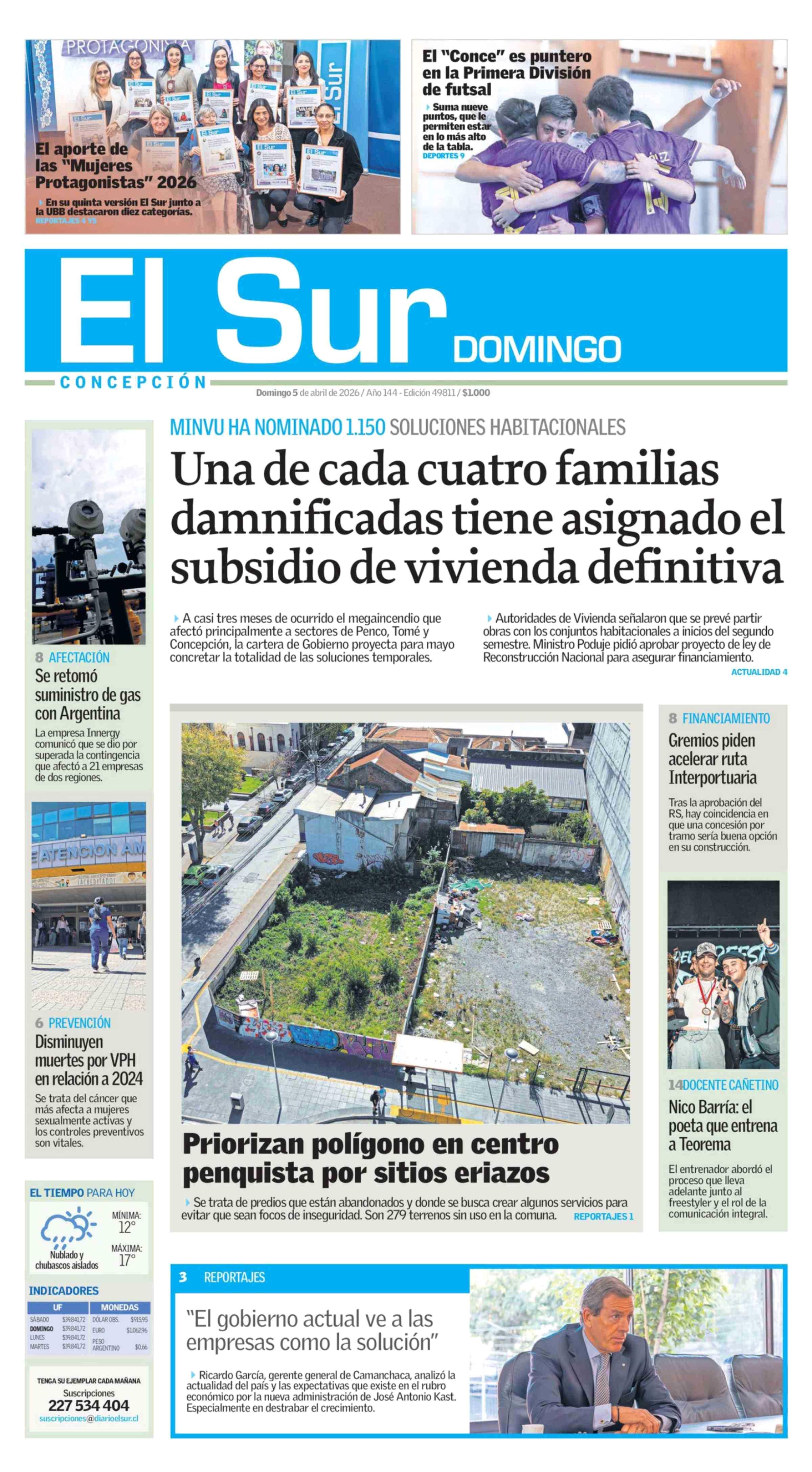 | Fecha: | 05-04-2026 | Sector: | Portada | Región: | Región del Bío-Bío |