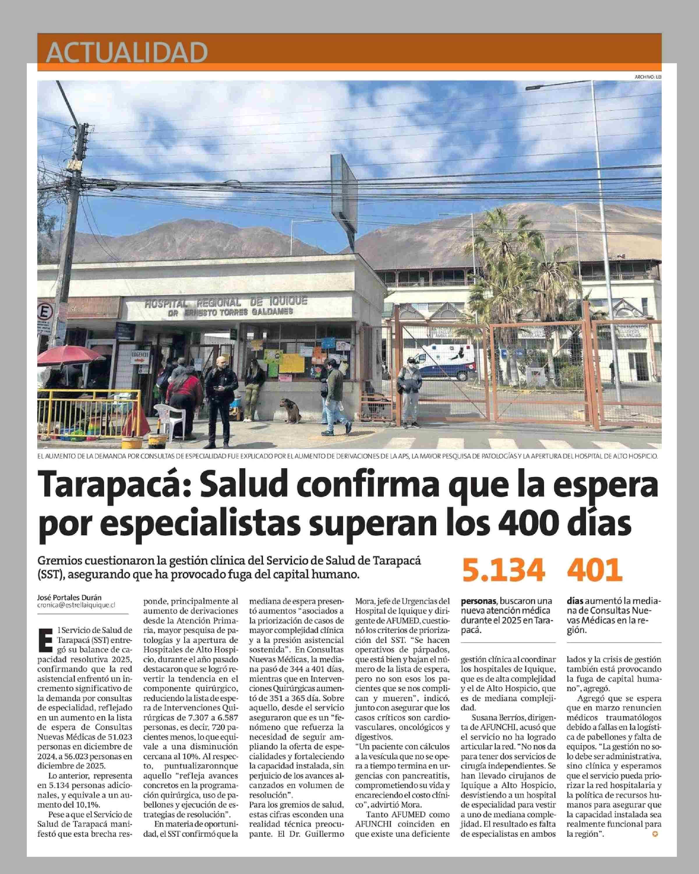 Título: Tarapacá: Salud confirma que la espera por especialistas superan los 400 días